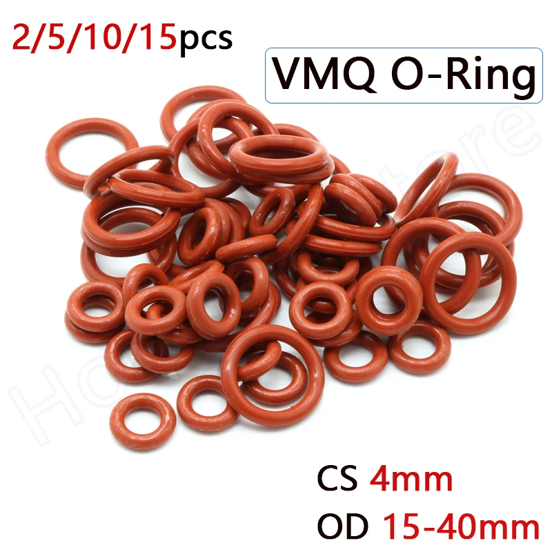 Уплотнительное кольцо из Красного силиконаVMQ, внешний диаметр 15-40 мм, уплотнительные прокладки из пищевого каучука CS 4 мм, термостойкость 200