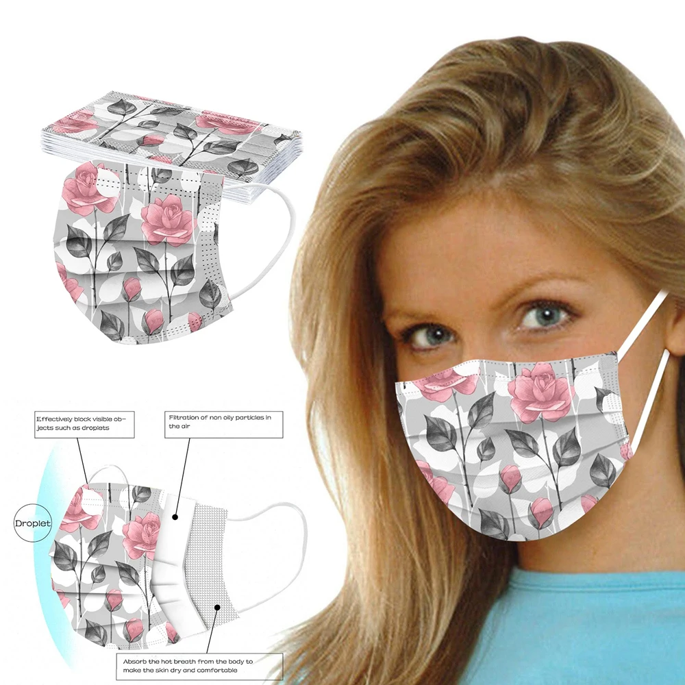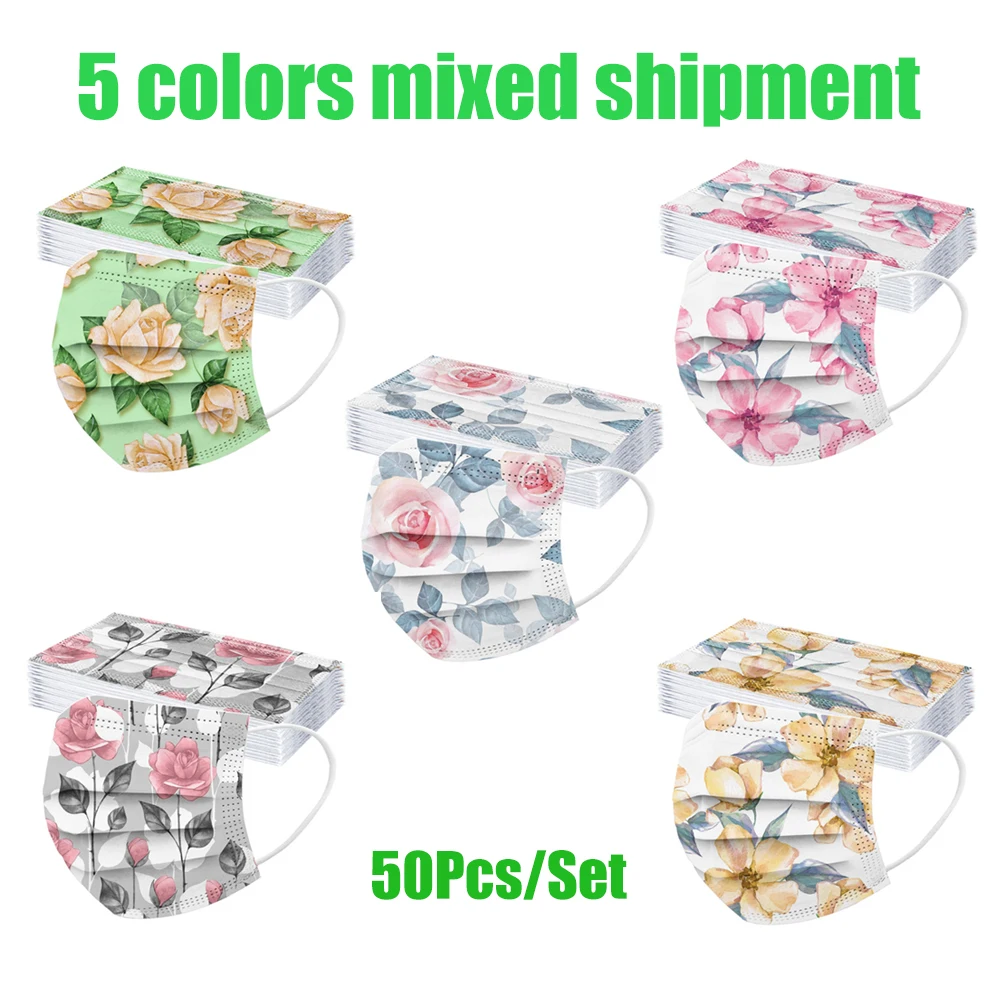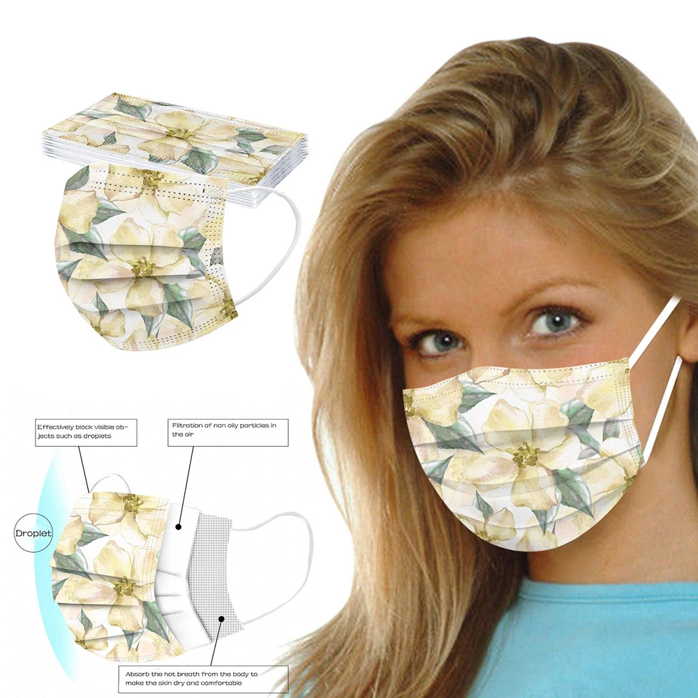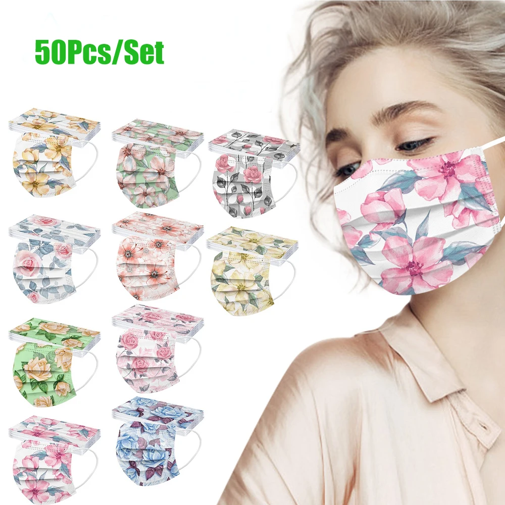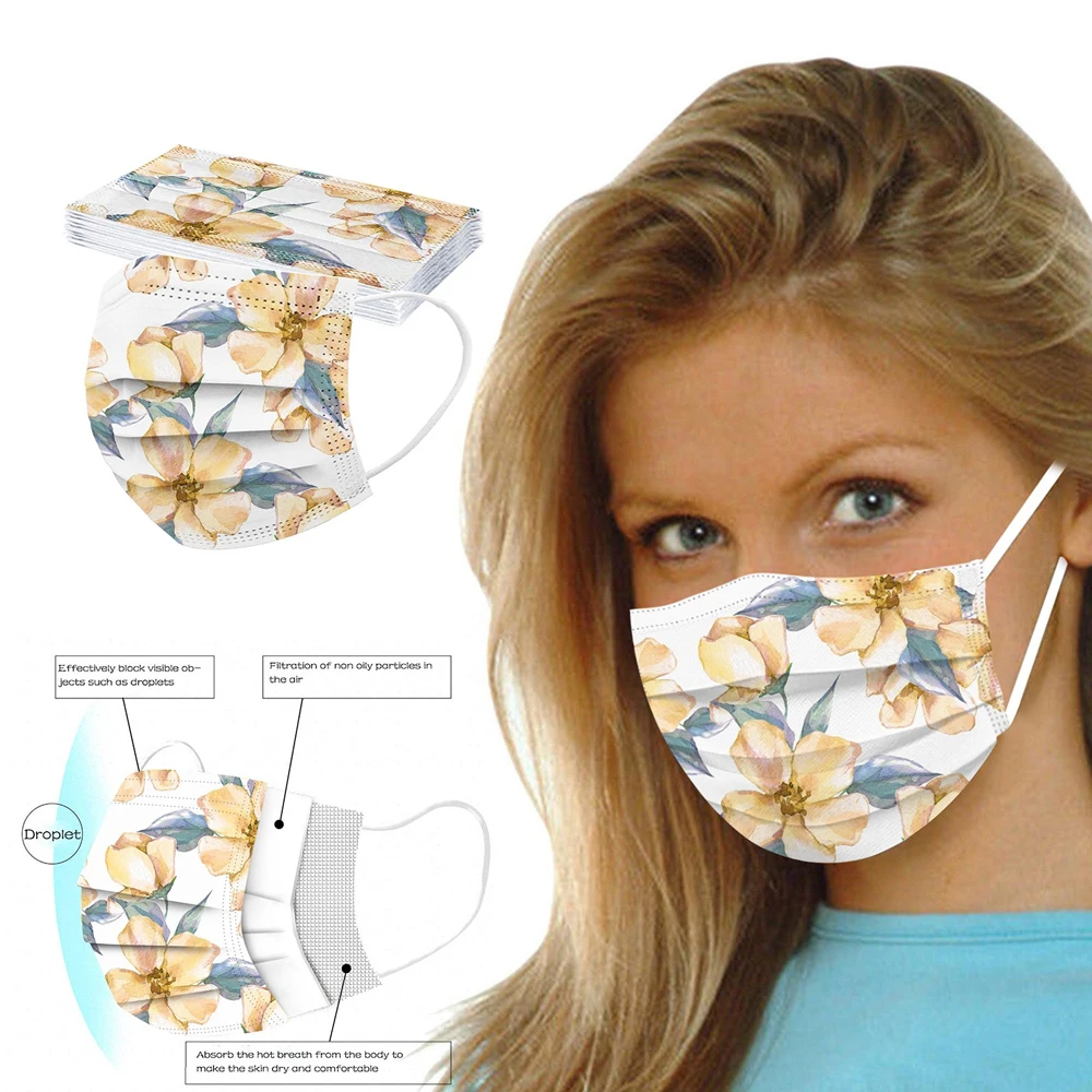 50 шт.лот цветочным узором одноразовая маска сварочная маска для лица 3 слоя аэродинамическим способом из расплава нетканые дышащая маска для лица для женщин