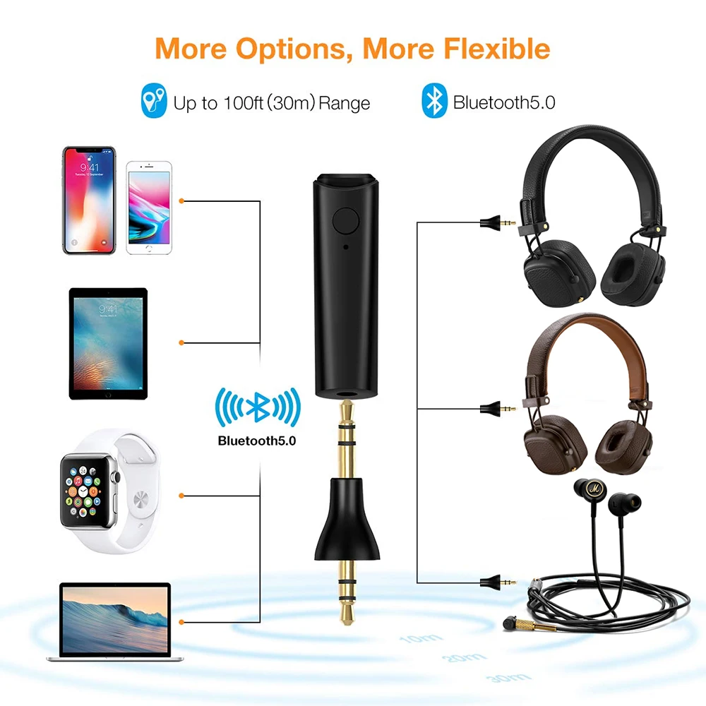Bluetooth 5,0 громкой связи музыкальный адаптер мини беспроводной стерео 3,5 мм A2DP аудио приемник ForMarshall Major II 2 монитор наушникиОписание продукта