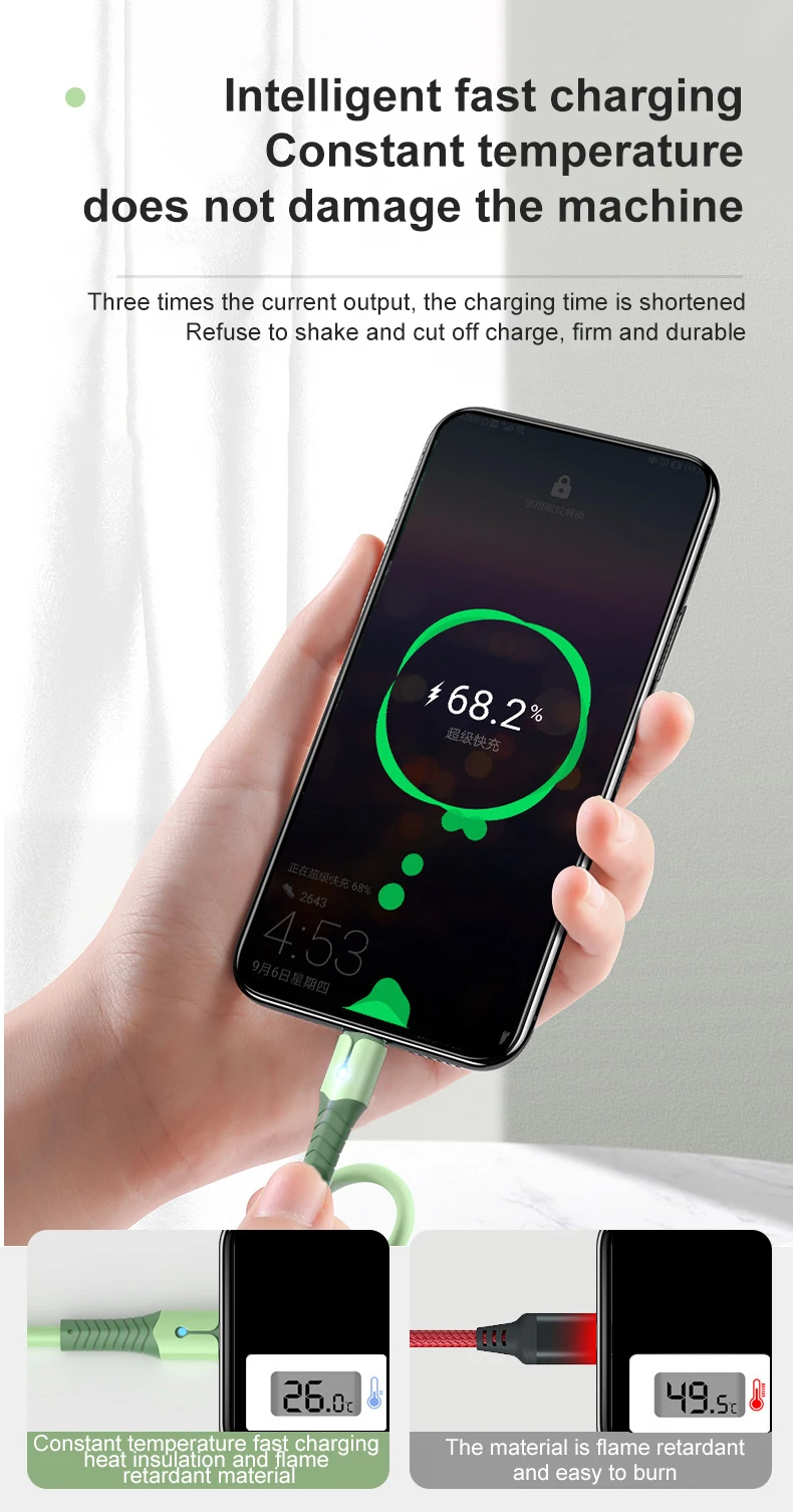 Жидкий Силикон 5A, Сверхбыстрая зарядка, кабель со светодиодной под...