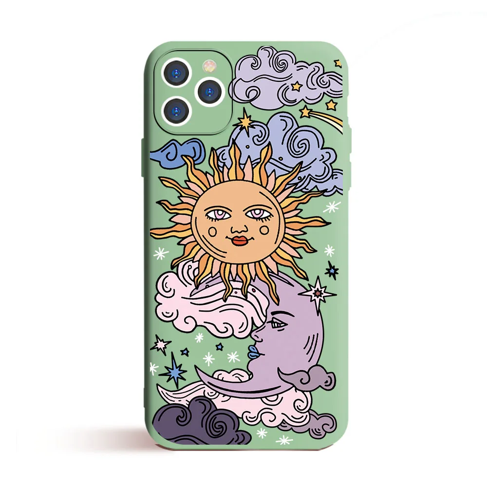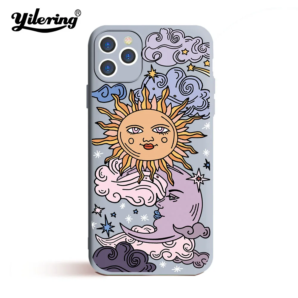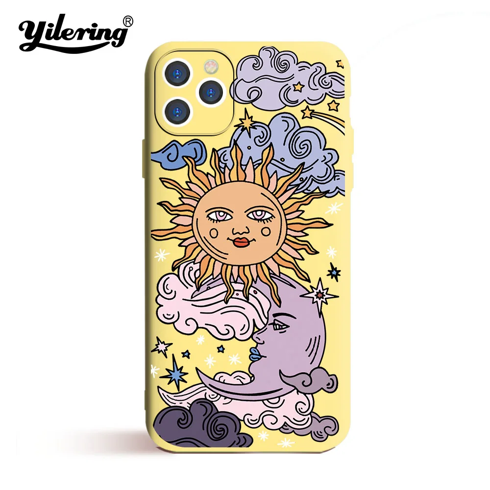 Чехол для телефона iPhone 11 12 Pro Mini 11 XS MAX X XR SE2020 7 8 Plus, модный Забавный мягкий чехол для телефона с изображением лица Солнца и Луны, чехол с тонкими отверстиями