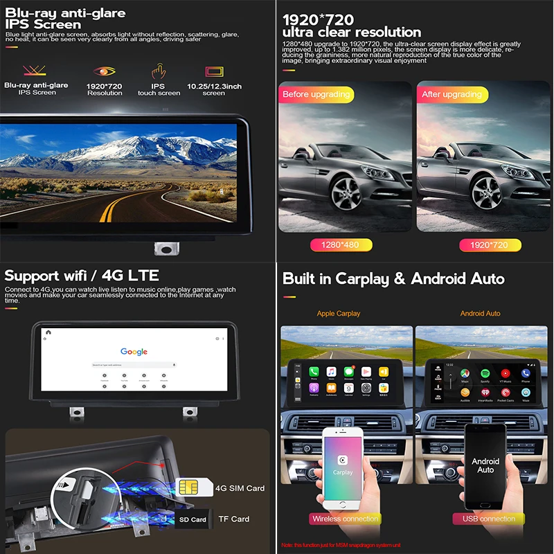 Автомобильный мультимедийный плеер 8 + 256G Qualcomm для BMW F45 F4...