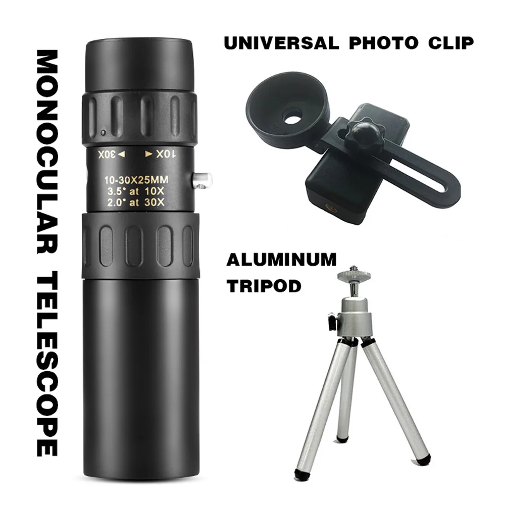 1 x 10-30x25мм монокулярный телескопШтатив-1 шт.1x Зажим для фотоИли1 x 10-300x40мм монокулярный телескопШтатив-1 шт.1x Зажим для фото