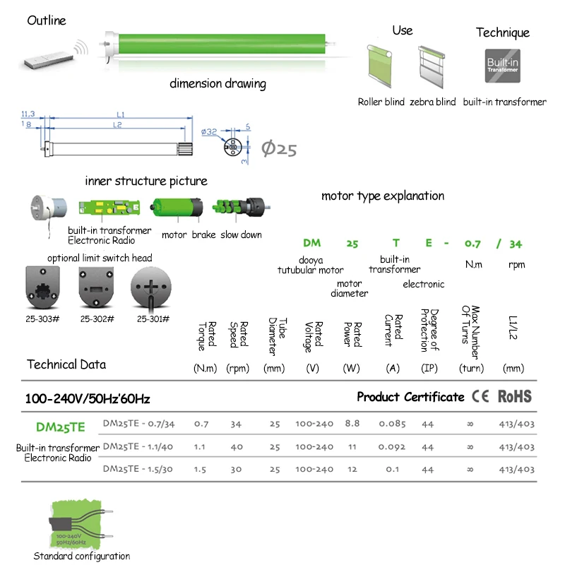 Применение:Для электрические жалюзи/сотовые жалюзи/римские жалюзи