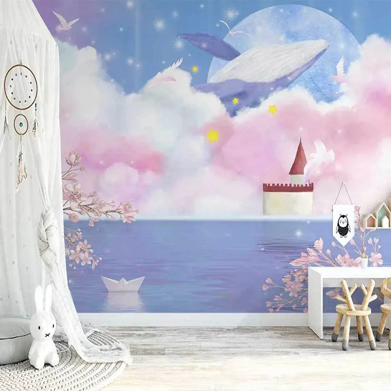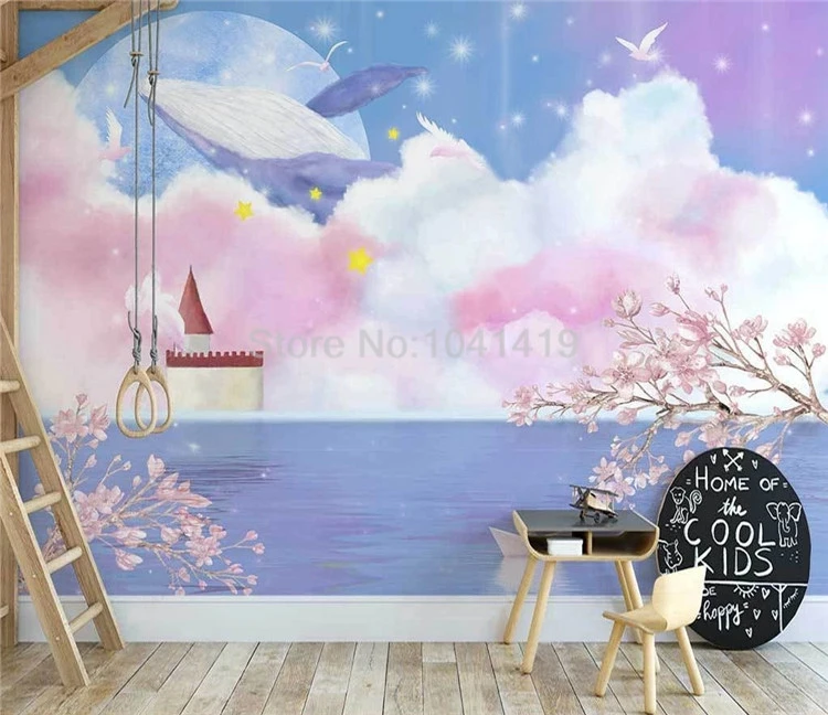 Пользовательские фото обои скандинавские Ins ручная роспись художественный цвет облако КИТ росписи детской комнаты фон стены Papel де Parede