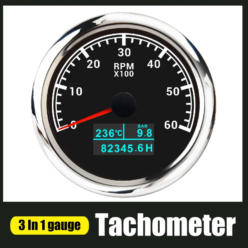 85 мм Водонепроницаемый 3 в 1 Тахометр Датчик 8000 6000 4000 RPM Тахометр светодиодный ТЕМПЕРАТУРА ВОДЫ масло Давление счетчик моточасов для лодки автомобиля