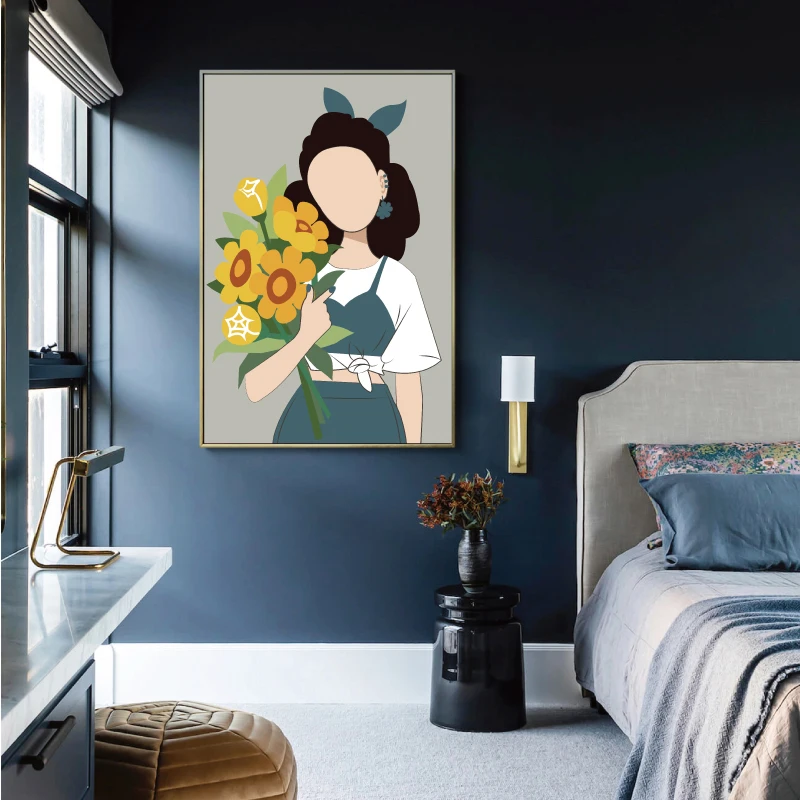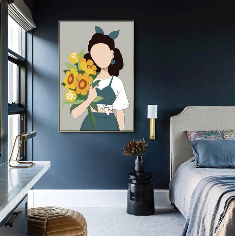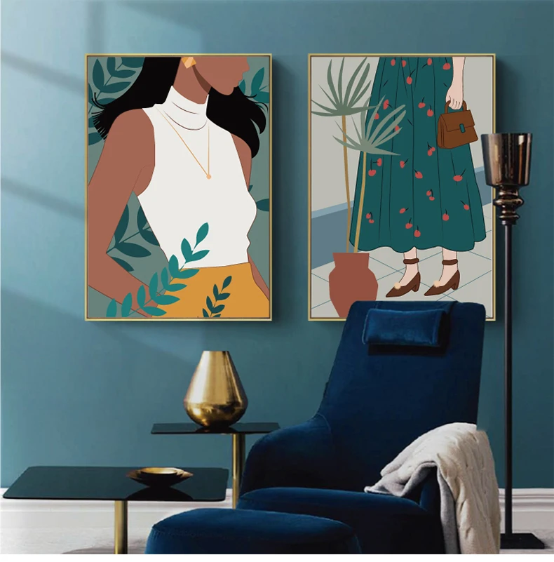 Скандинавская Синяя Женская картина маслом, холст, плакаты и печать...