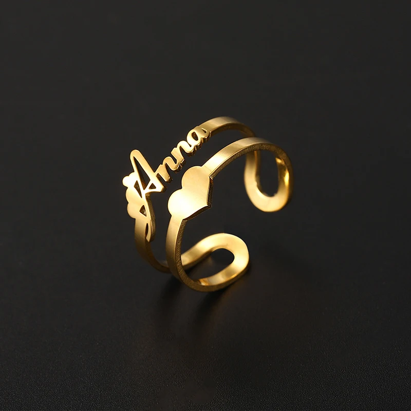 Индивидуальные двойные кольца с именем из нержавеющей стали, регулируемые женские обручальные кольца, индивидуальный подарок для пары, украшения для матери и ребенка