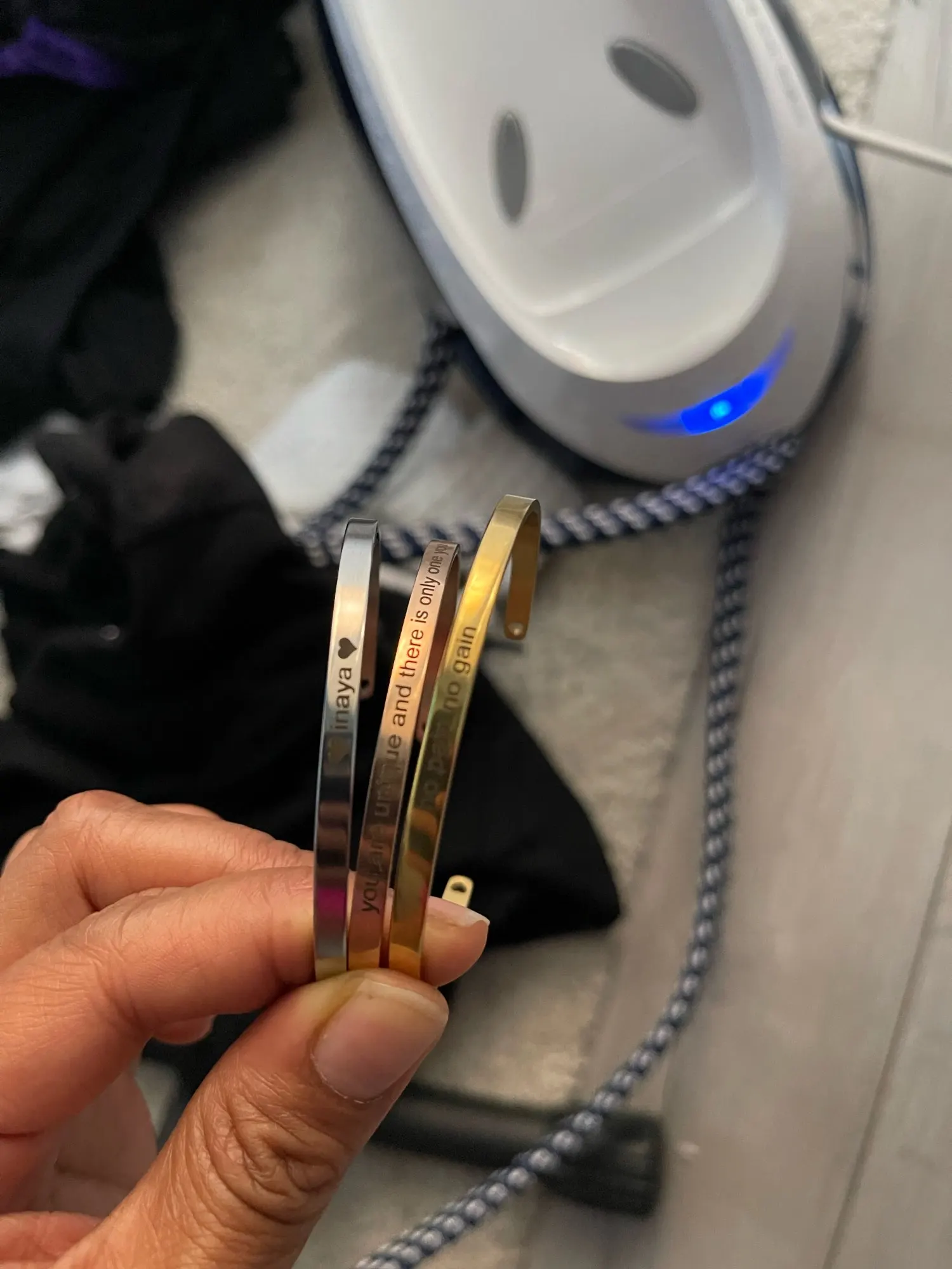 Браслет очень понравится. Заказывала ранее у других продавцов на али, а также в известных российских магазинах. Этот понравился больше всего. Единственно, надпись можно ярче делать. Просила шрифт 13, отказали и сделали обычный. Внутри также сделали гравировку. Доставка долгая.
