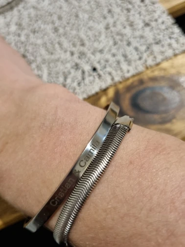 Хороший браслет, как описано, и выгравирован именно так, как я хотел!