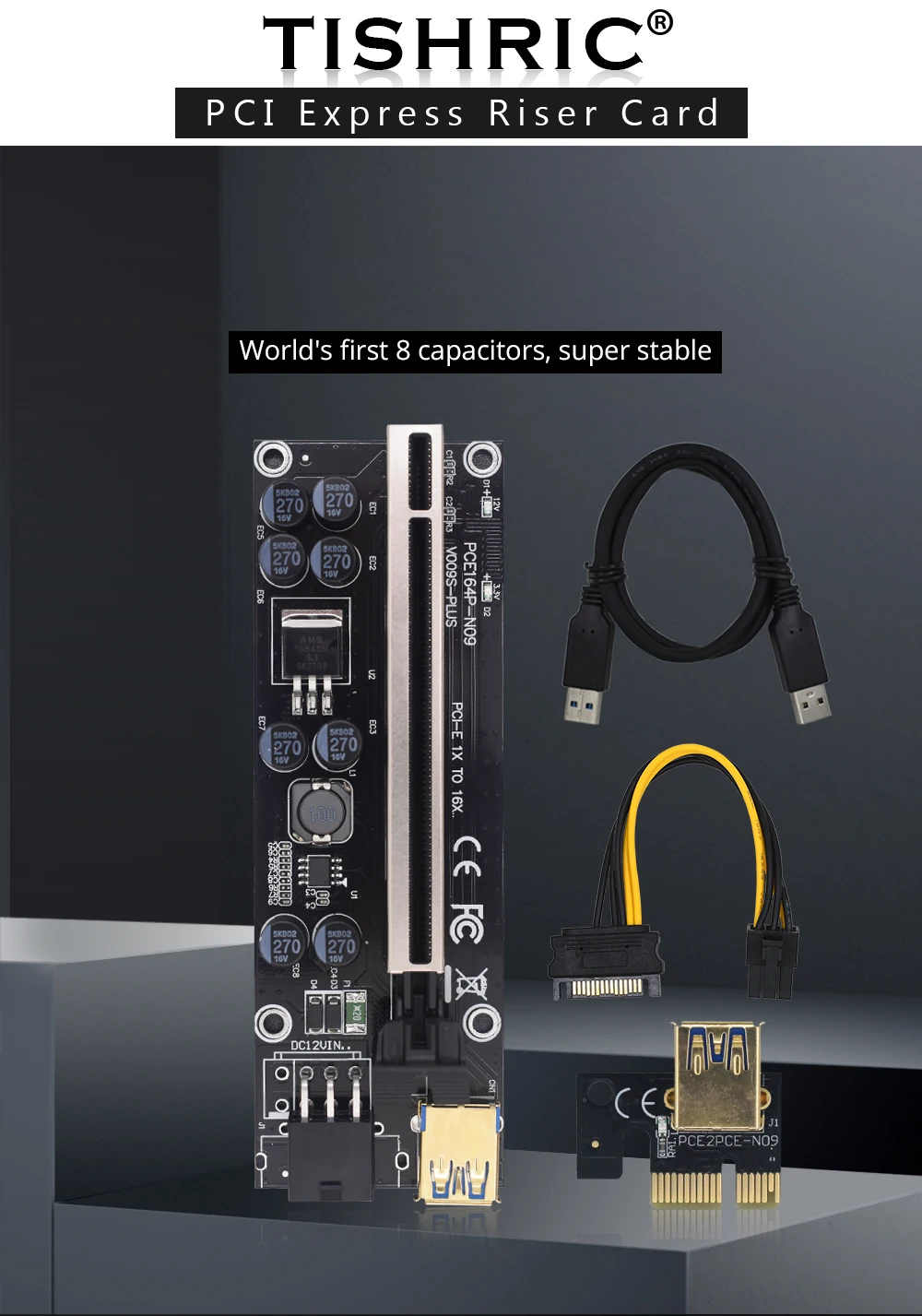 TISHRIC PCI-E Riser 009s Plus Card PCIE PCI E Extender GPU X16 USB 3,0 до 6pin адаптер кабель для майнинга для видеокарты