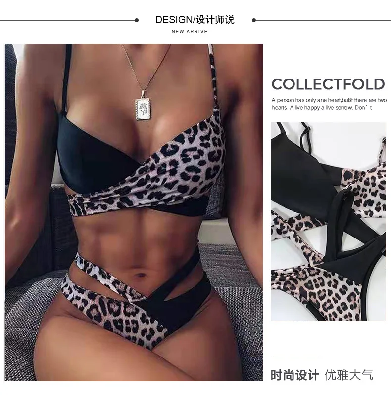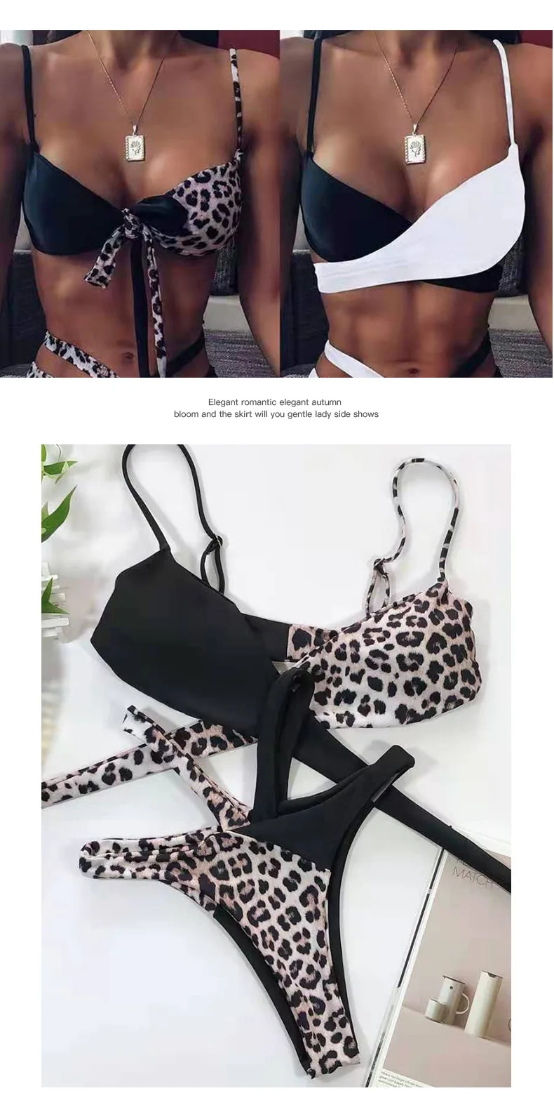 Женский леопардовый купальник-бикини, пикантный бразильский купальник с купальный костюм бикини, пляжная одежда, 2021