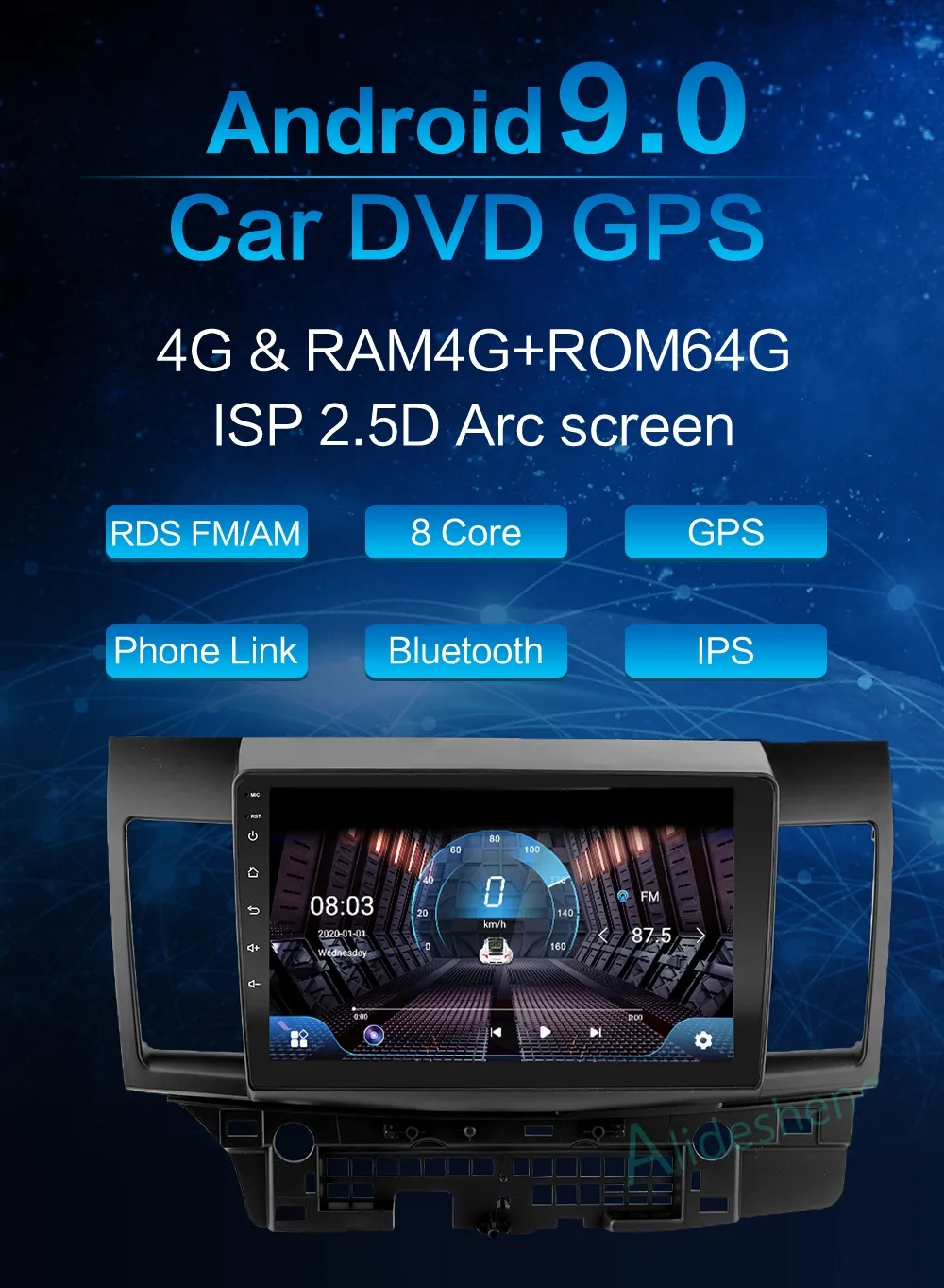 Автомагнитола 2 din, 4 г + 64 ГБ, DSP, Android 9,0, 4G, мультимедийный видеоплеер для Mitsubishi Lancer 2008-2016, Wi-Fi, BT