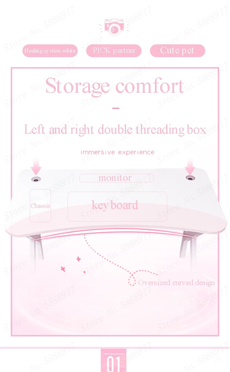 Настольный компьютерный стол, розовый и белый, для домашних игр, дл...