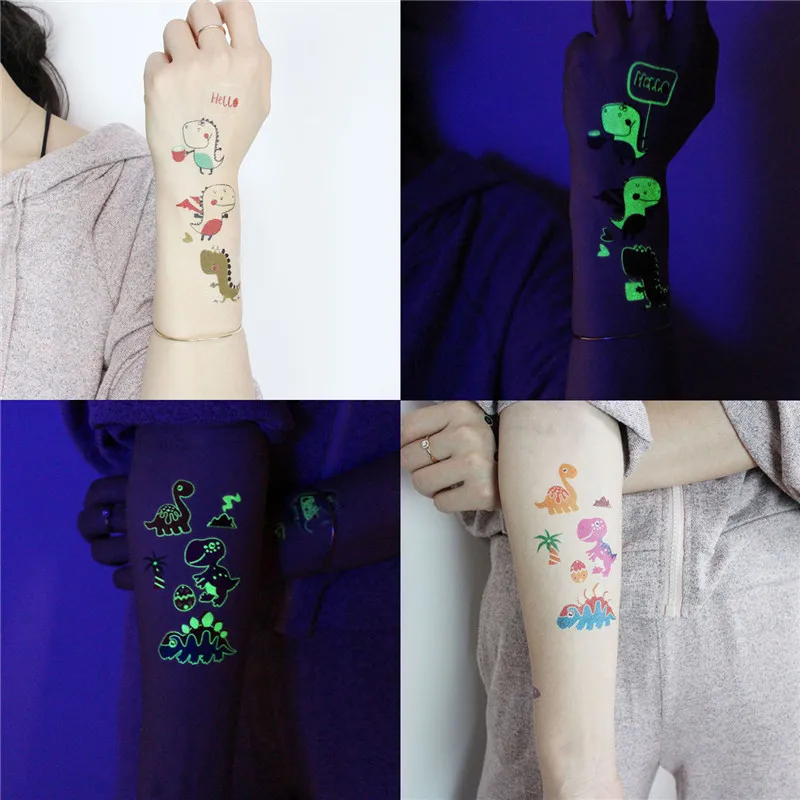 Новинка, светящиеся наклейки-тату с динозавром, Детские Мультяшные забавные светящиеся экологические наклейки, временные украшения для детского боди-арта