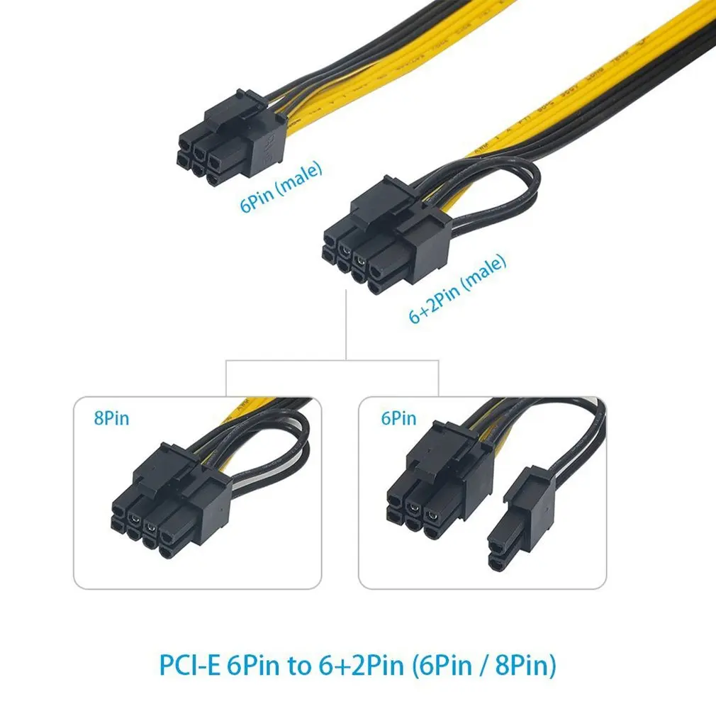 6 шт. 6-контактный PCI-E на 8-контактный (6 + 2) PCI-E (штекер-штекер) Кабель Питания GPU 50 см для майнинга графических карт HP Server коммутационная плата