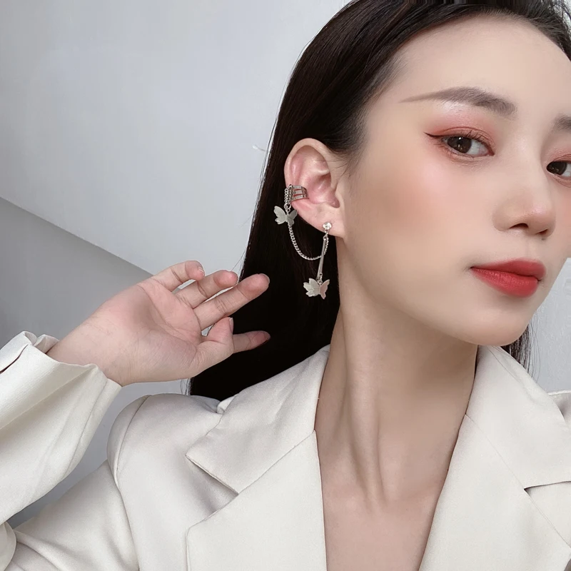 Модная обувь в винтажном стиле, сапоги в панковском стиле, бабочка клип серьги-Крючки для ушей из нержавеющей стали клипсы с двойным с перфорацией в стиле ретро, для женщин, ювелирные изделия для девушек