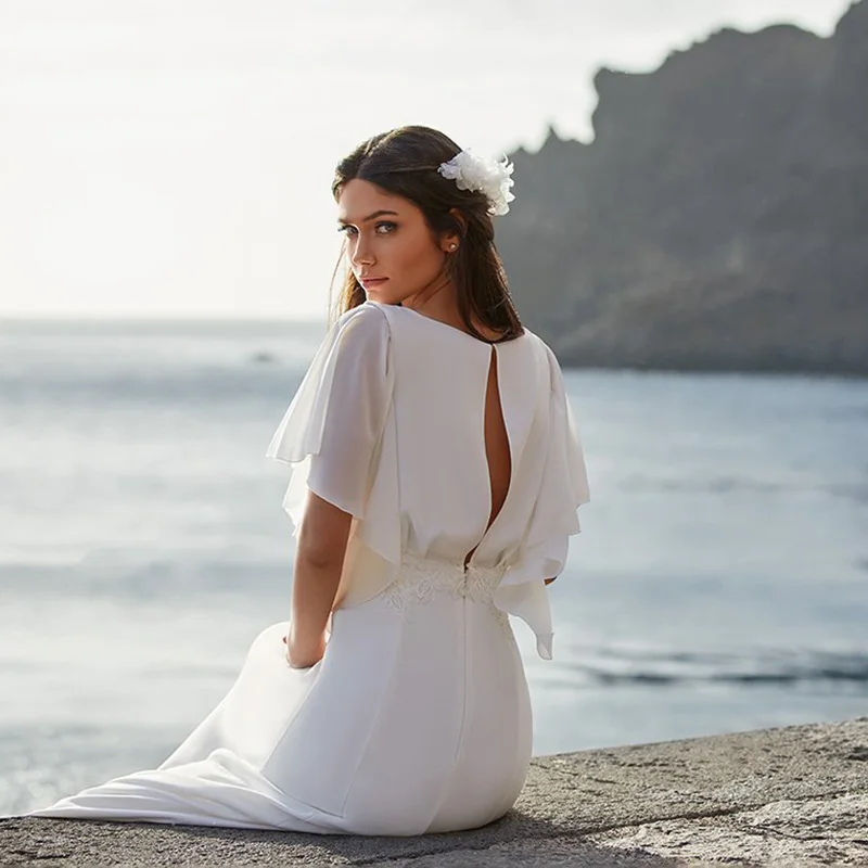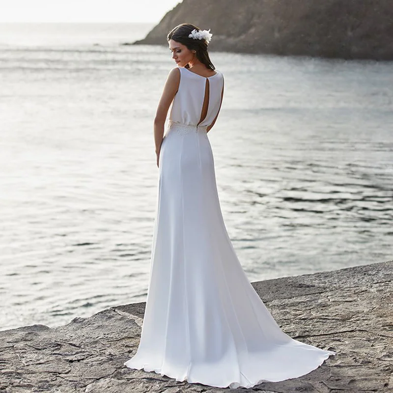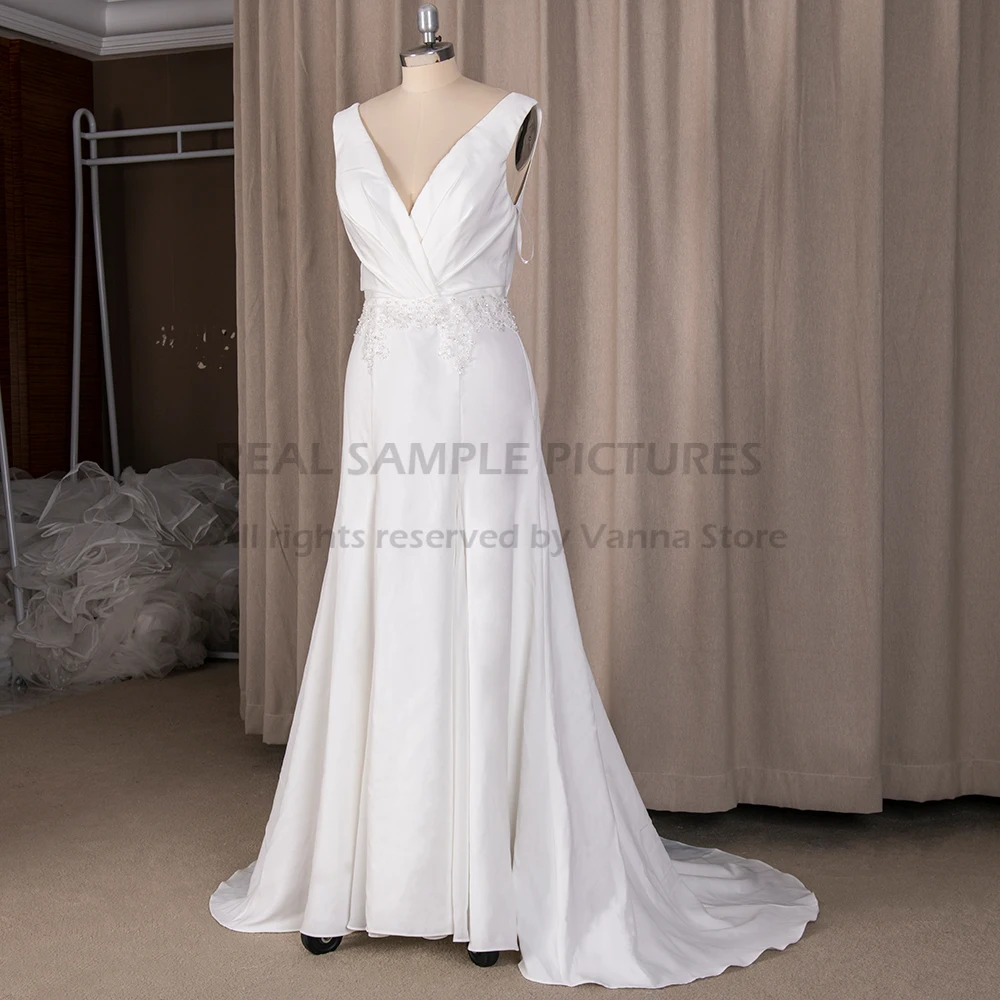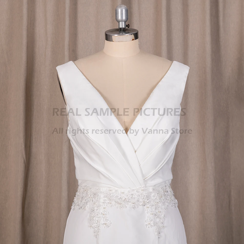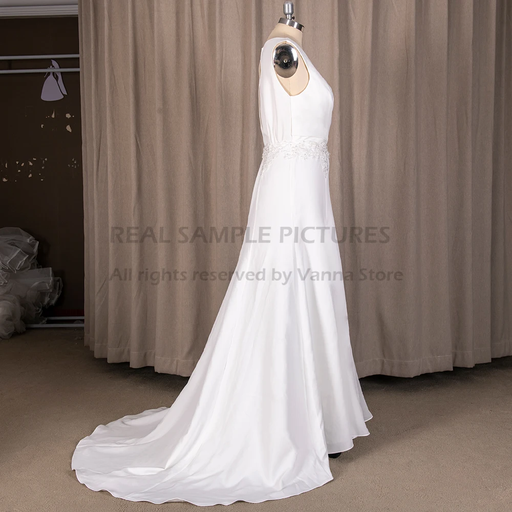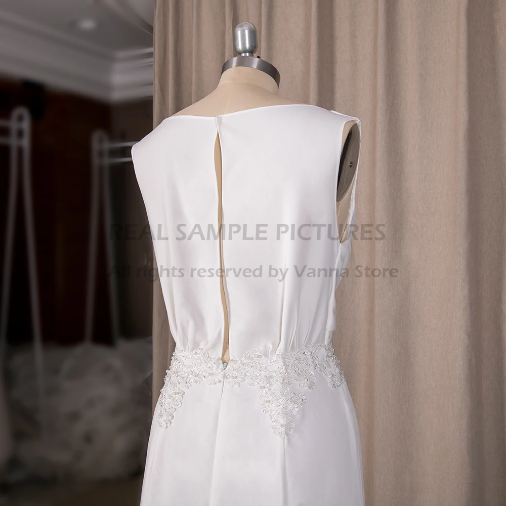Шифоновое с высоким разрезом, v-образный вырез на шее, свадебное платье 2021 с низким вырезом на спине кружевное пляжное размера плюс свадебные Сатиновые туфли в стиле Бохо Замочная скважина свадебное платье 10037 #