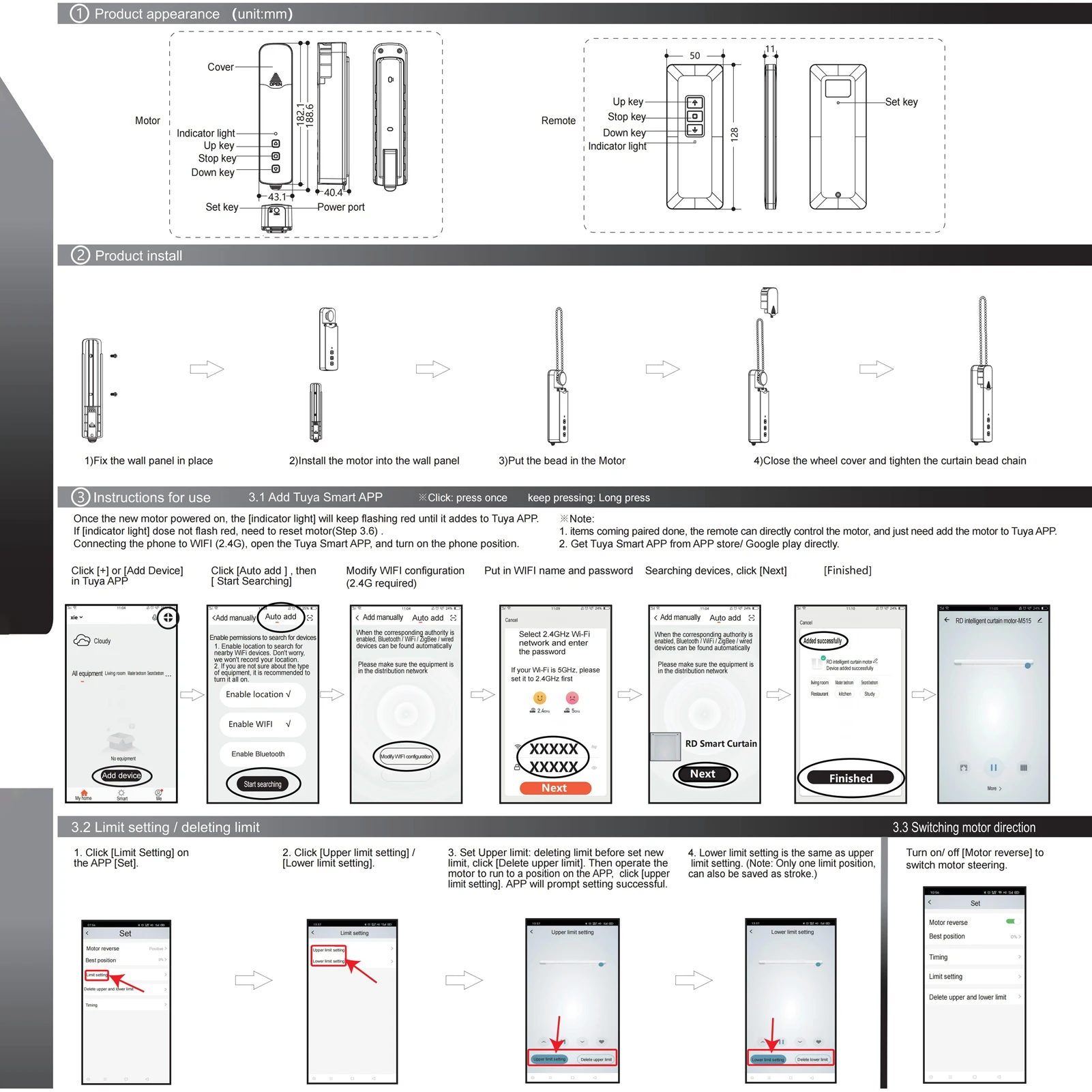 Этот умный Потяните шарик мотор полезен для вас, чтобы использовать в вашем доме или офисе. Вам больше не нужно вручную поднимать занавеску, иногда ваши руки держат вещи, это не удобно для вас, чтобы управлять занавеской. С помощью этого продукта вы можете открыть или закрыть шторы через мобильный телефон или даже ваш голос. Это очень легко для вас, чтобы управлять им, приходите и попробуйте.Особенности:Когда вы находитесь вдали от дома, с этим карнизом и приложением Tuya, вы можете управлять занавеской с помощью мобильного телефона, больше не нужно беспокоиться о том, чтобы забыть открыть или закрыть шторы вовремя.Вы можете установить свой лимит на поездки и останавливаться там, где вы хотите, и максимальное количество поездок неограничено, что позволит вам лучше использовать опыт.Червячно-турбо самоблокирующееся тормозное устройство используется для обеспечения надежного тормоза и тишины при использовании.Этот продукт является двигателем для штор прямого тока, который является безопасным и надежным.Голосовое управление: с этим шторным мотором и голосовым помощником, таким как Alexa и Google Home, вы можете контролировать свой занавес своим голосом.Характеристики:Материал: АБС-пластикЦвет: белыйАккумулятор пульта дистанционного управления: 2 * cr2430 батареи (в комплекте)Тип адаптера: ЕС, Великобритания, США, Австралия (опционально)Номинальное напряжение: 12 в постоянный токНоминальная мощность: 4,5 WНоминальный крутящий момент: 0,45 нмСкорость вращения: 30 об/минРабочая температура: -20 ℃ ~ + 65 ℃Встроенный частота приема: 915 МГц, 2,4 ГГцРазмер штор двигателя: 180*40*34 мм/7,1*1,6 * 1.3inШторы Мотор Вес: 262 г/9,2 унцииРазмер посылка: 220*183*47 мм/8,7*7,2*1,9 дюймовВес посылка: 600 г/фунтовПримечание:Этот двигатель является приводным устройством, применяемым к бисерным цепные роликовые шторы и реализуем интеллектуальную автоматическую работу.Пожалуйста, обратитесь к руководству для подключения двигателя к приложению Tuya.Упаковочный лист:1 * мотор для штор1 * адаптер (опционально)1 * Руководство пользователя1 * пульт дистанционного управления