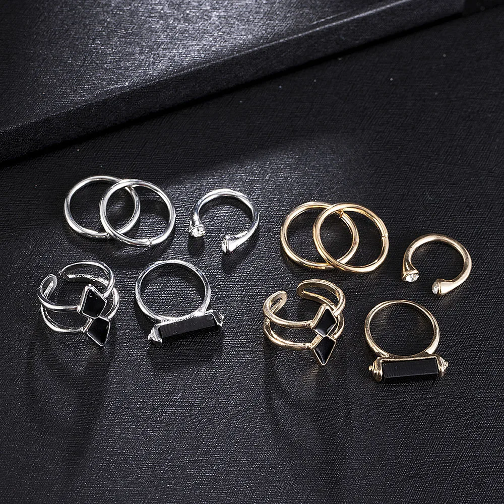Набор простых колец для женщин, черные ажурные ювелирные украшения в стиле миди, кольцо на фаланг пальца, Винтажные Ювелирные Изделия, 5 шт., 2021
