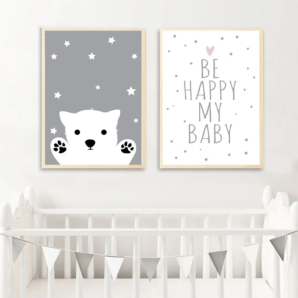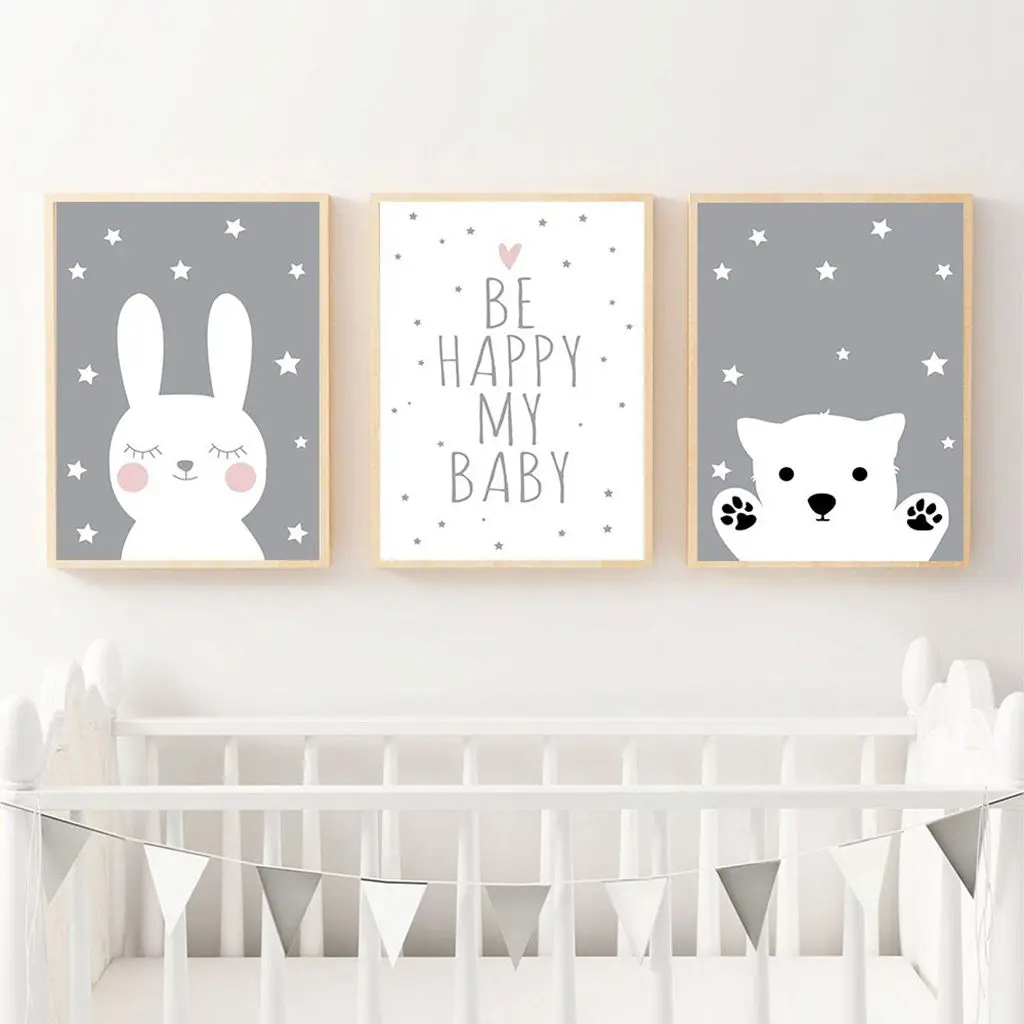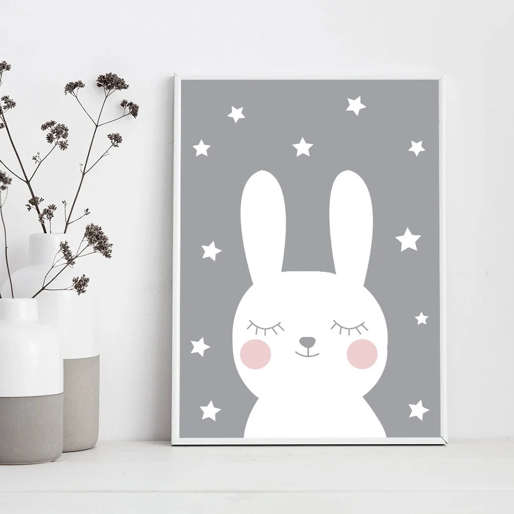 Милый мультяшный кролик серый медведь детская комната Мальчик комната девочка комната живопись скандинавские постеры и письма печать на стене искусство холст Pictur
