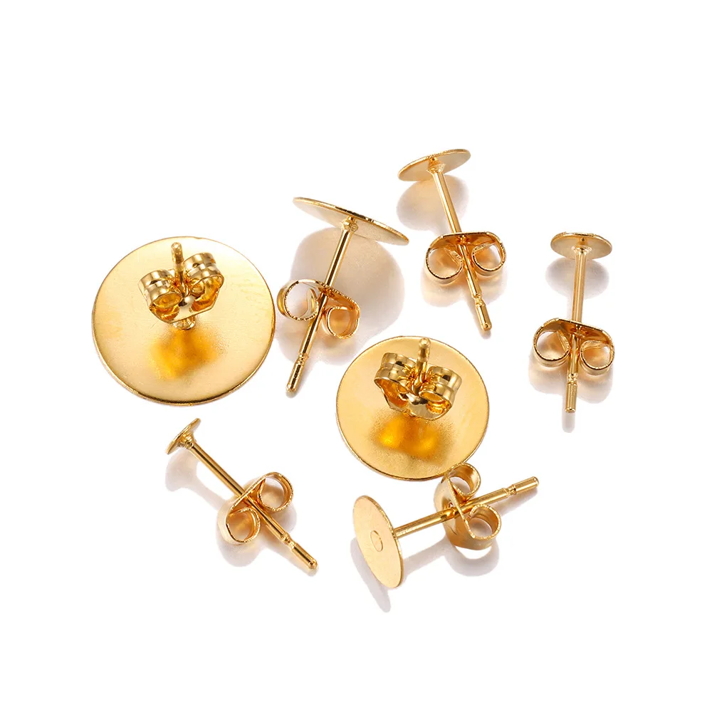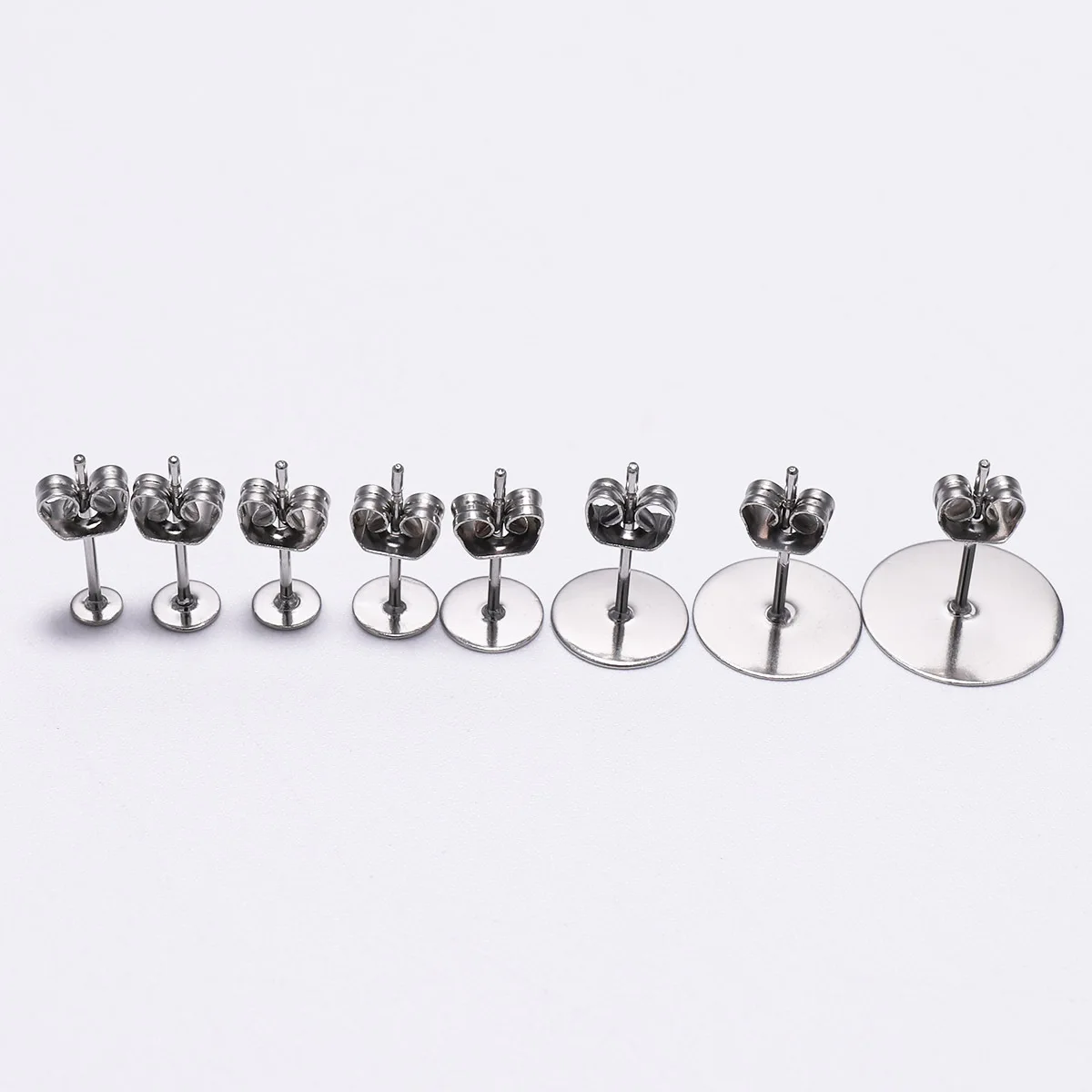T 100% серьги-гвоздики из нержавеющей стали с резьбой, с плоской головкой, базовые штифты с серьгами, для изготовления ювелирных изделий