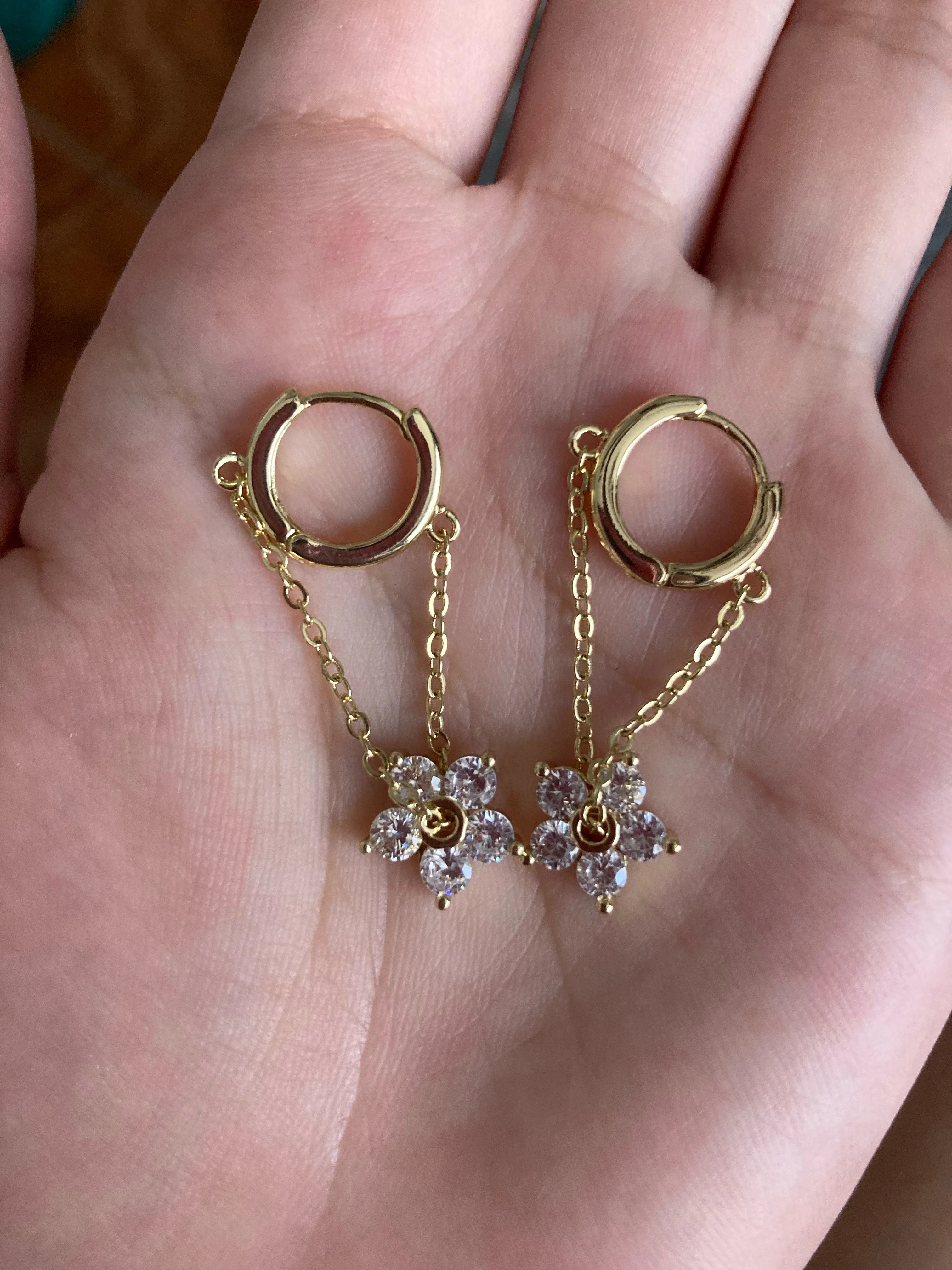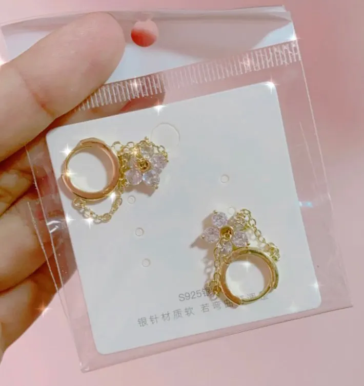 Женские серьги-кольца цветок MENGJIQIAO, корейские элегантные циркониевые серьги-кольца с металлической цепочкой, ювелирные украшения