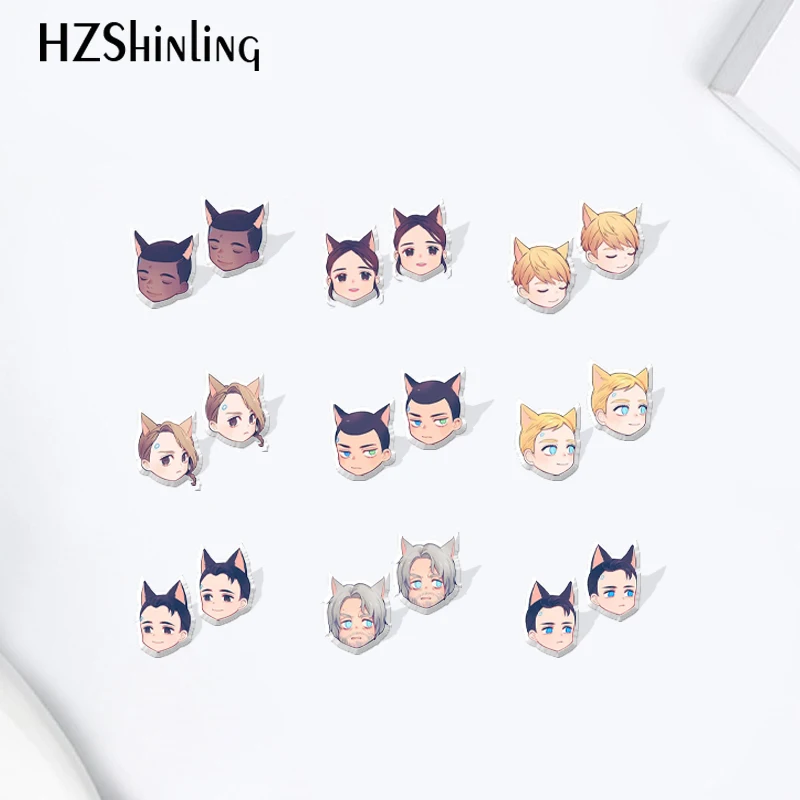 Серьги-гвоздики из акриловой эпоксидной смолы, с мультяшным аниме-р...