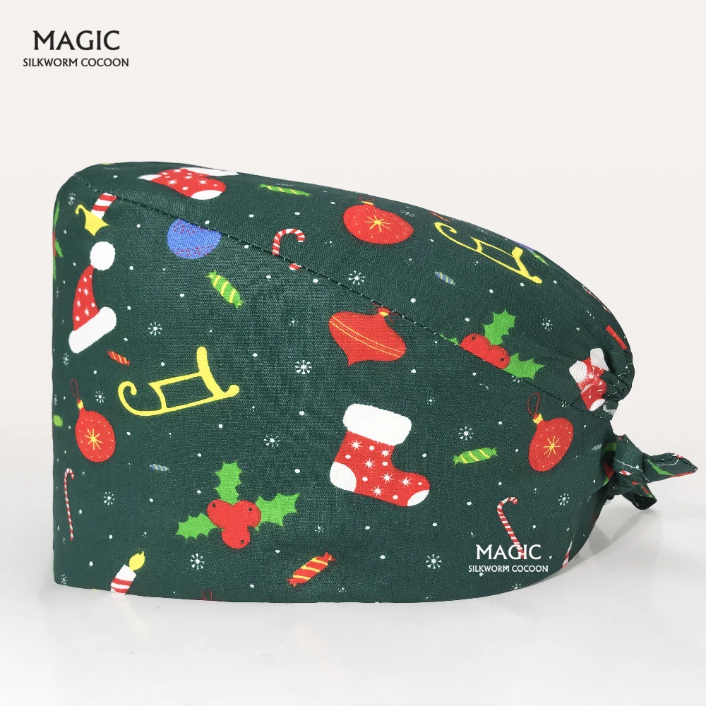 Шапочка для косметологии, с рождественским принтом, регулируемая