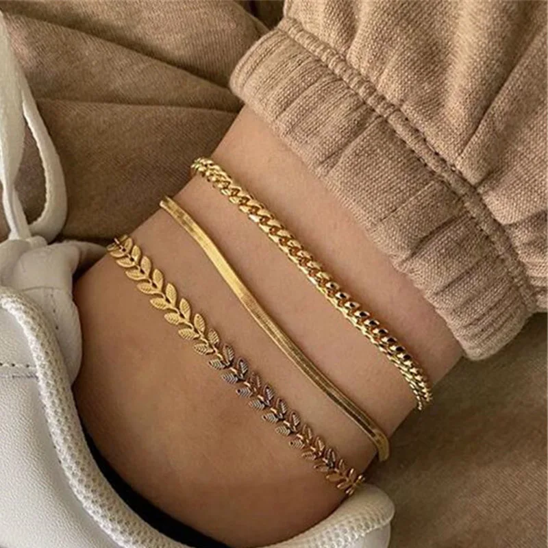 Ножной браслет LETAPI, 3 шт.компл., простая цепочка золотого цвета,...