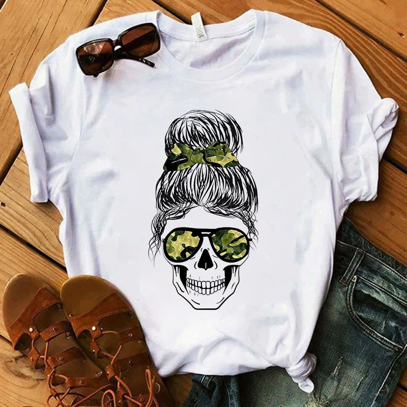 Женская футболка с принтом черепа, Летняя Повседневная Футболка Harajuku с коротким рукавом и круглым вырезом, новая хипстерская футболка для женщин, 2021