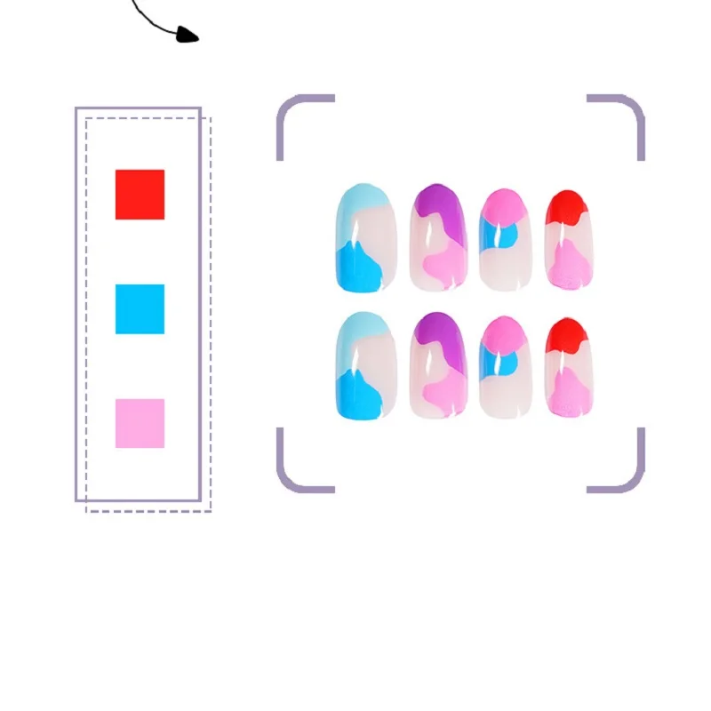 GAM-BELLE красочные граффити поддельные ногти французский короткий в форме эллипса накладные ногти принадлежности для профессионалов искусственные ногтиОсобенности:12 различных размеров для разных пальцев, 2 наконечника для каждого размера.Для профессионального наращивания ногтей и французского маникюра.Легко использовать с клеем для ногтей или желе двухсторонние клейкие ленты.Легко обрезать и прикрепить их к любой длине и форме, которые вам нравятся.Красочные граффити накладные ногтиМатериал: АБС-пластикСтиль: накладные ногти с полным покрытиемПакет включает в себя: 24 шт./компл. накладные ногти + 1 мл клей для ногтейСоветы по использованию:1. Вырезайте, напиливайте и формируйте собственные ногти.2. Очистите свой собственный ноготь.3. Выберите подходящий кончик, сравняя ширину вашего естественного ногтя.4. Приклейте наконечник на ногтевую пластину.5. Выровняйте и формируйте кончик.6. Начните применять УФ-гель или лак для ногтей.