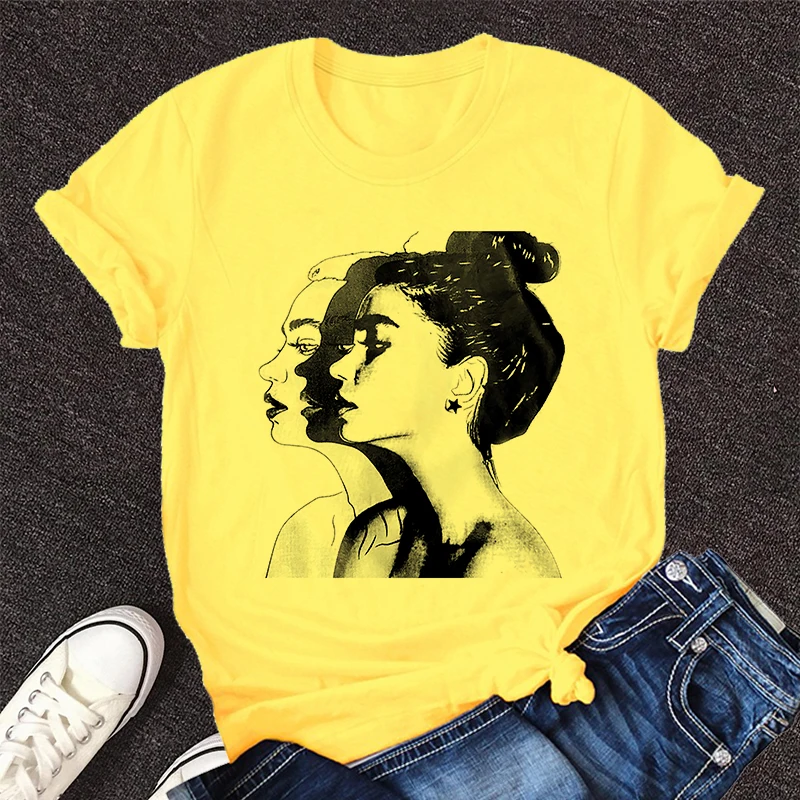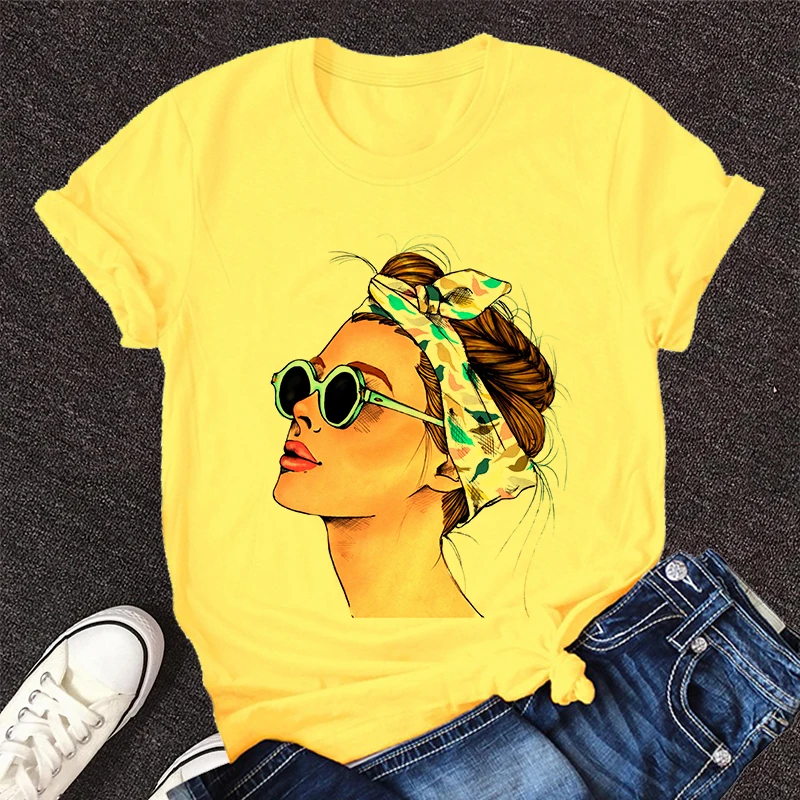 Летняя модная обувь, элегантные женские принт желтого цвета размера плюс футболка женская Повседневная футболка с Харадзюку уличная одежда с коротким рукавом и О-образным вырезом топы, футболки