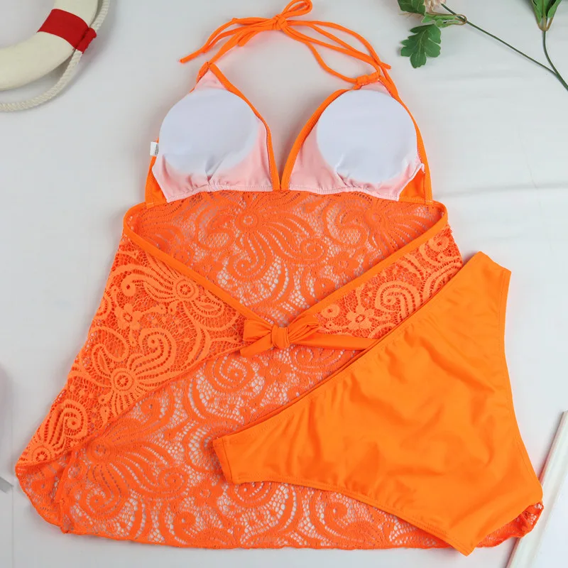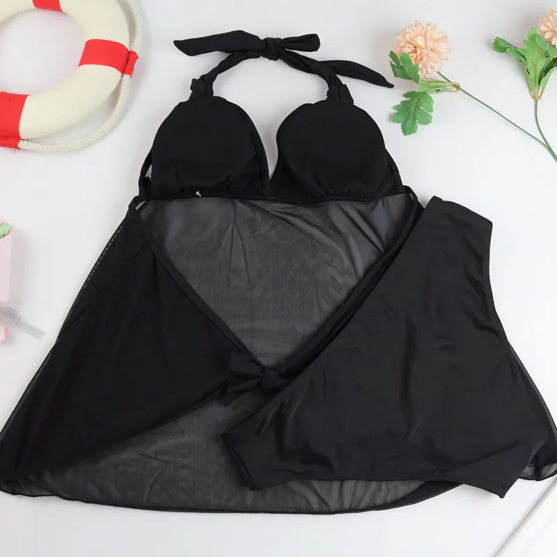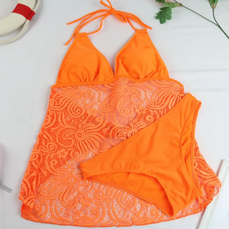 Прозрачный купальник-танкини, женское сексуальное кружевное бикини, комплект из 2 предметов, купальник, женский купальный костюм, халтер, монокини, размера плюс 3XL