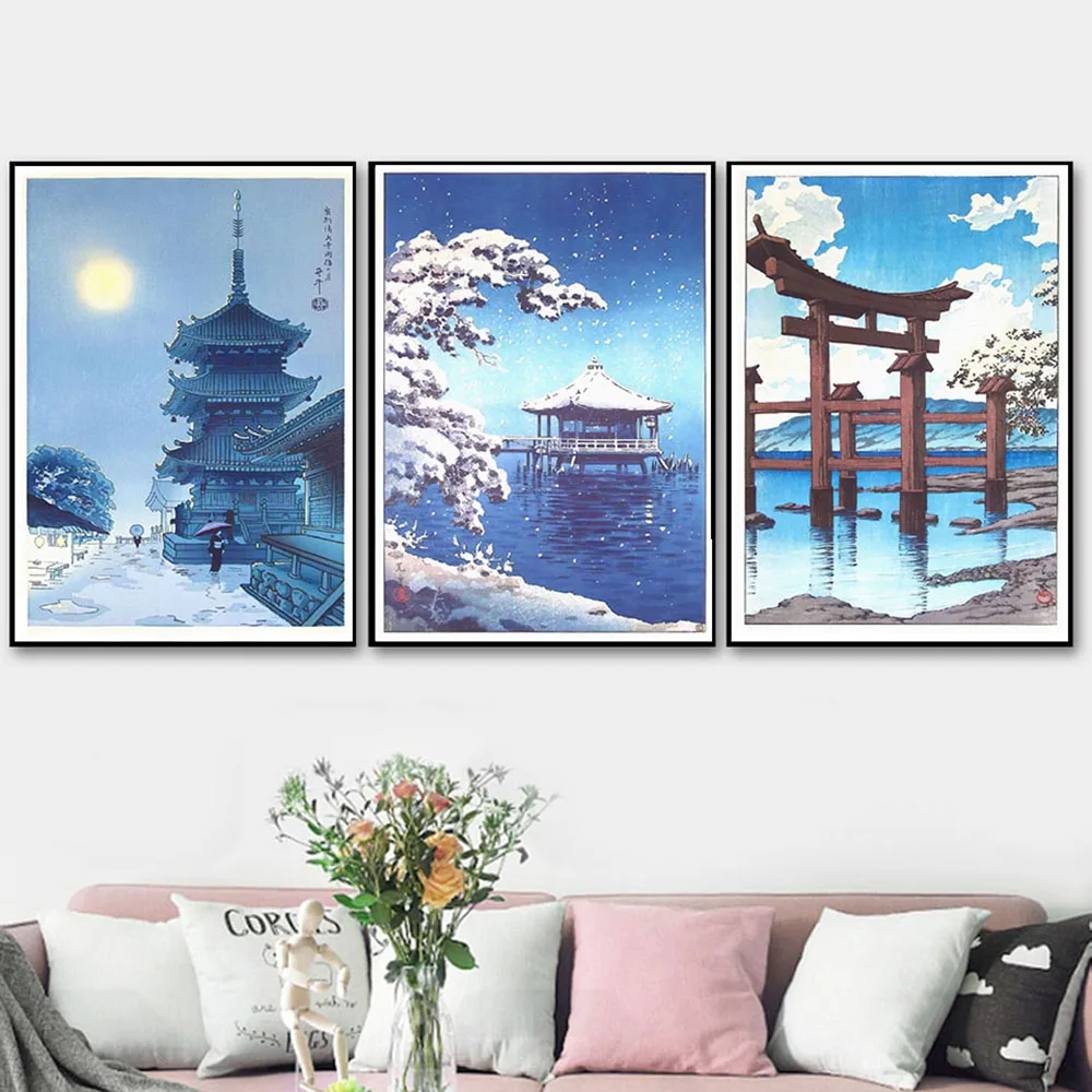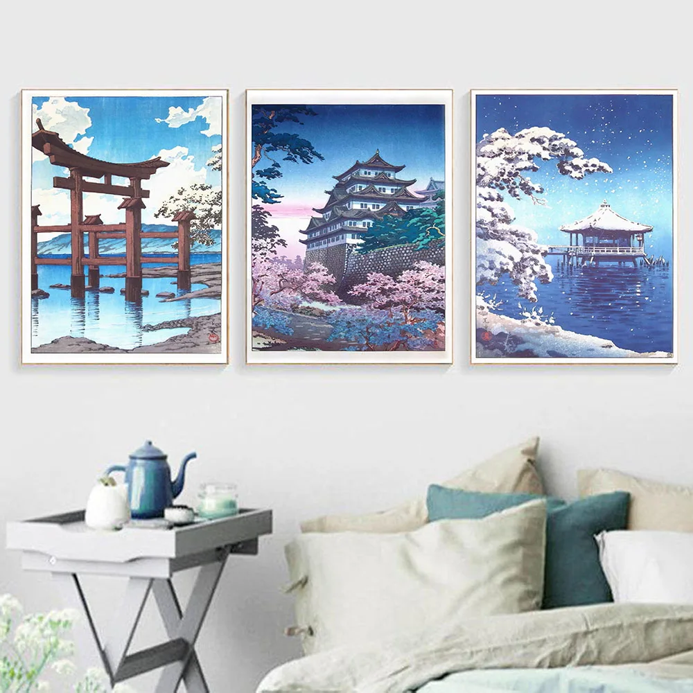 Ретро японское искусство минималистичный постер путешествия городской пейзаж печатная живопись холст искусство стена гостиная картины Декор без рамки