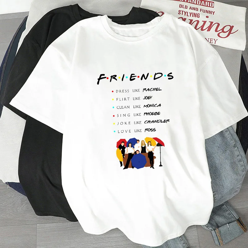 Летняя графическая Футболка с принтом f.r.i.n.d.s, модный веселый ретро Топ, женская футболка с круглым вырезом и коротким рукавом, забавная мультяшная футболка