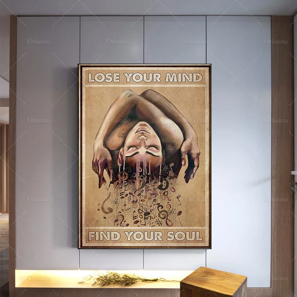 Шэрон-музыкальный персонал "потеряньте свой мозг" найдите свою душу ", ВИНТАЖНЫЙ ПЛАКАТ, домашний минимализм, украшение спальни, Картина на холсте, настенное искусство
