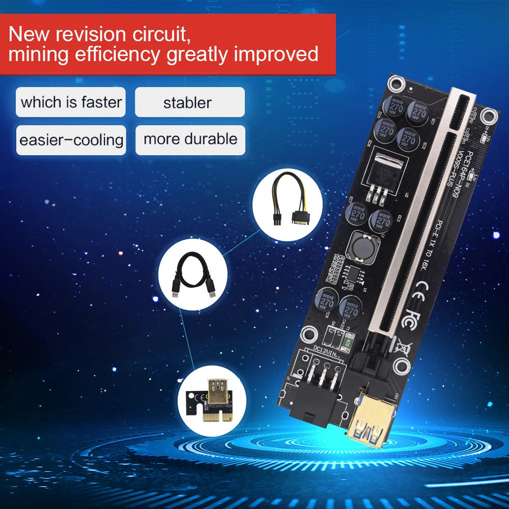 PCI-E Riser VER009 Plus Экспресс 1X 4x 8x 16x расширитель PCI E USB...