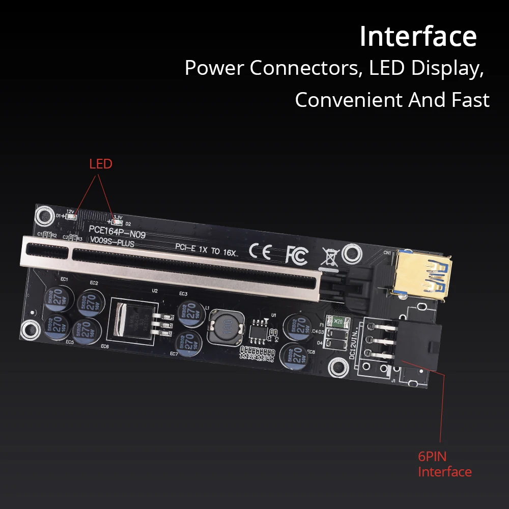TISHRIC 6 шт. VER009S Plus Райзер-карта PCI 6Pin 009S Miner Mining PCI-E PCIE 1X To 16X удлинитель адаптер Графический удлинитель