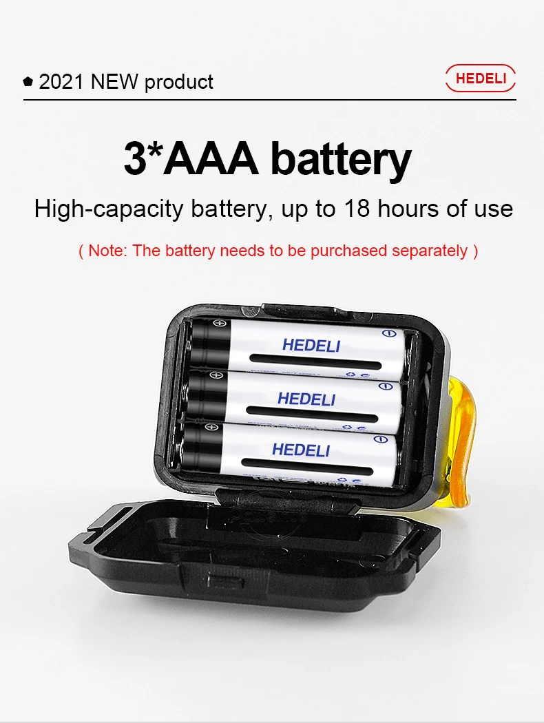 Спецификация продуктаБренд: HEDELIМодель: HT445Цвет: черныйФитиль: 2 * COB светодиодныйСветильник: желтый или белыйБатарея: батарея AAA(Аккумулятор в комплект не входит)Срок службы: 8-10 часовДиапазон: 300-500 мВес: 62 гРазмеры: 6,7*4*3,7 см4 шестерни: сильный светильник-низкий светильник-вспышка-SOSВодонепроницаемость: IPX-4Материал: авиационный алюминиевый сплав