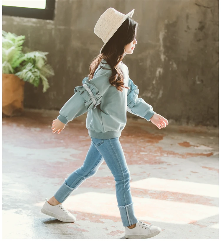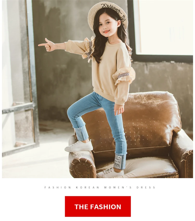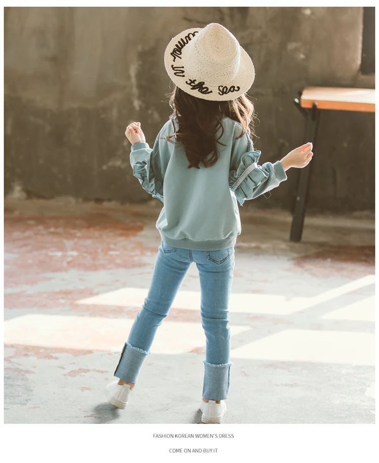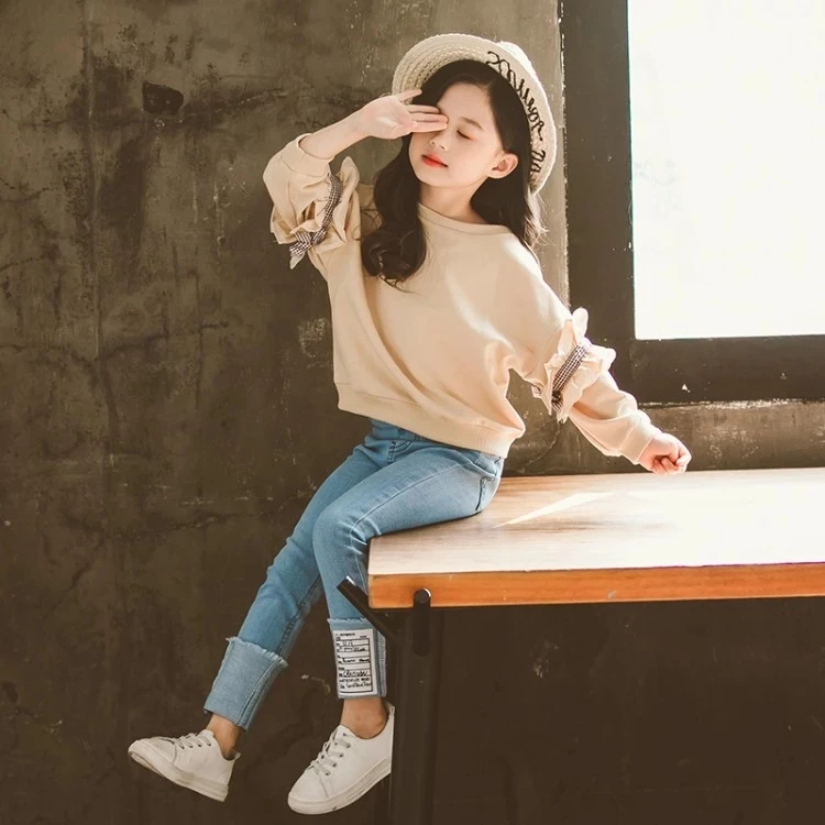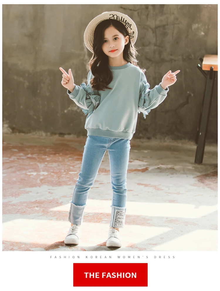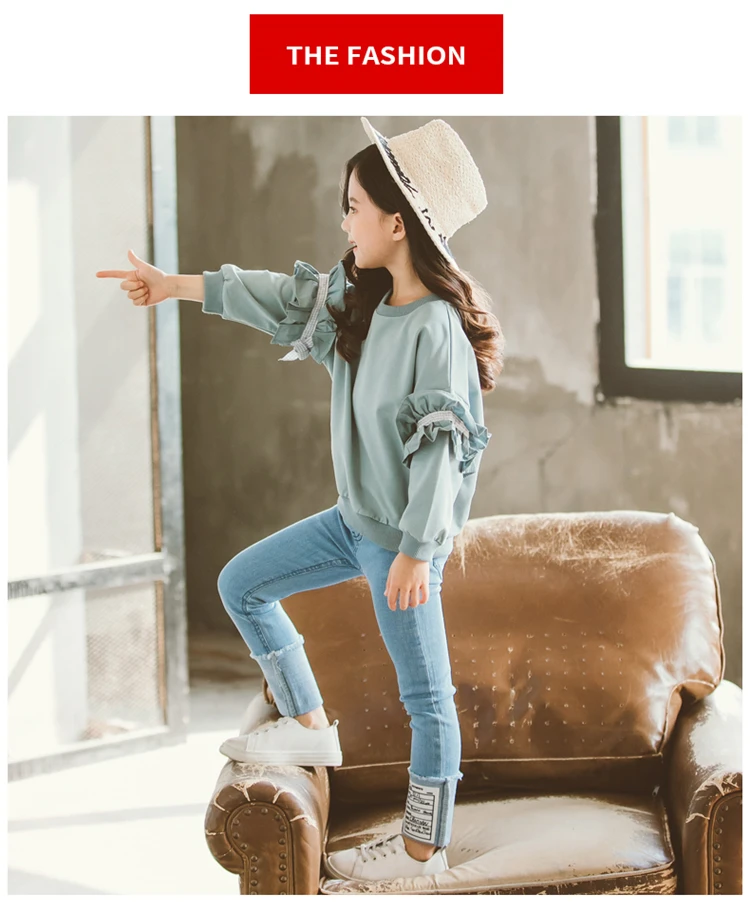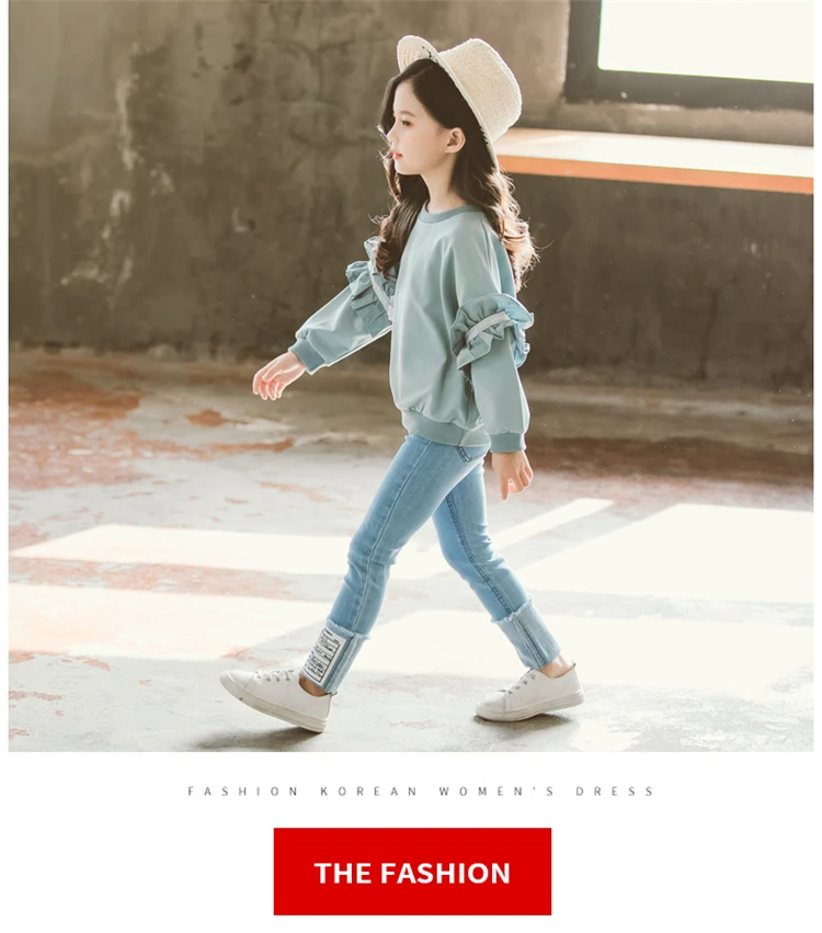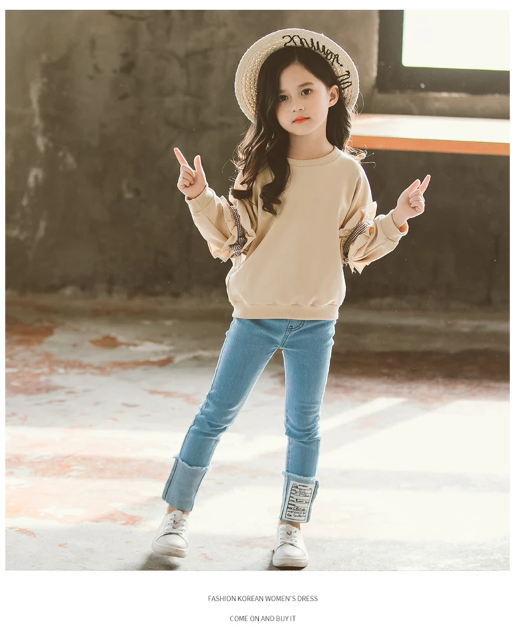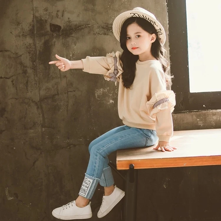 Для девочек Комплекты одежды школьная обувь для девочек комплект из двух предметов; Топы и джинсы, комплект, Детский костюм на весну-осень, верхняя одежда для девочек, 4, 7, 9, 12, 13, 14 лет