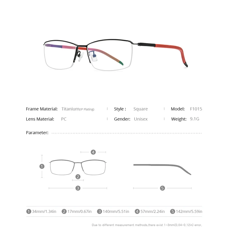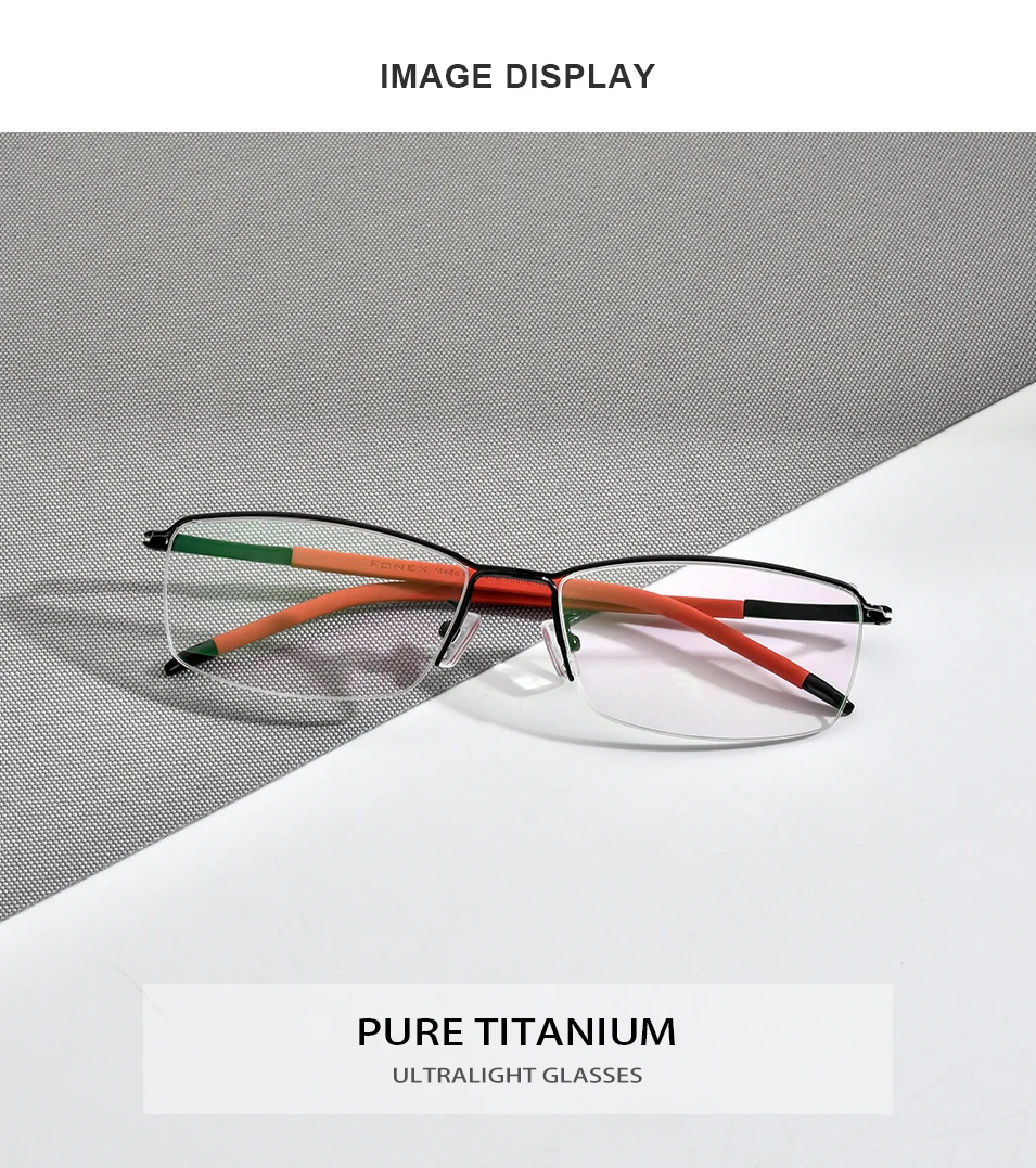 FONEX Мужские полуквадратные очки для близорукости из чистого тита...