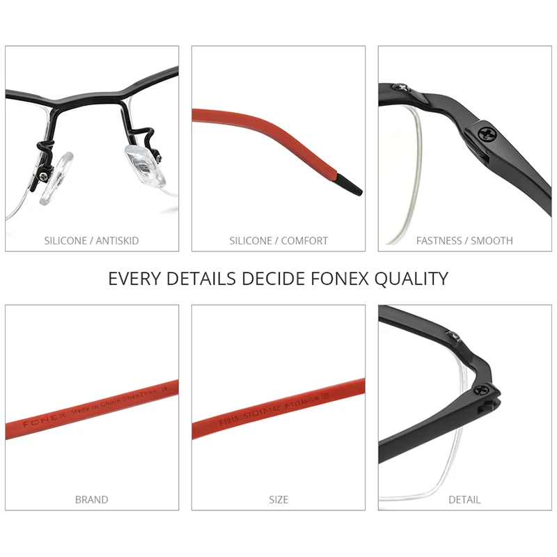 FONEX Мужские полуквадратные титановые оправы для очков от близорук...