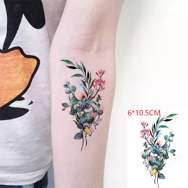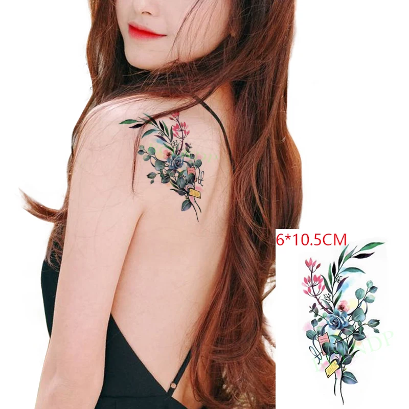 Водостойкая временная татуировка наклейка красный зеленый букет цветы сексуальный боди-арт флеш-тату поддельные татуировки для женщин мужчин