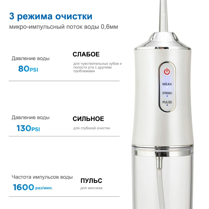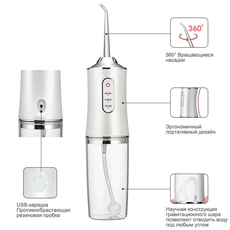 Ирригатор для полости рта зубов, 3 режима, USB, перезаряжаемый водный Флоссер переносная зубная вода Jet, емкость для воды 220 мл, водонепроницаемый очиститель зубов отбеливание зубов иригатор для зубов