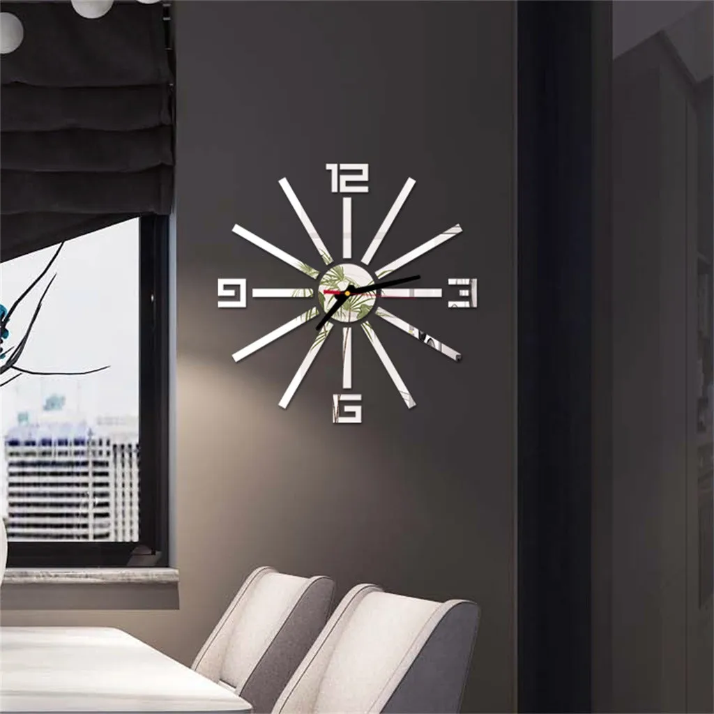 1 комплект Настенная Наклейка с зеркальным эффектом и часами (без аккумулятора)