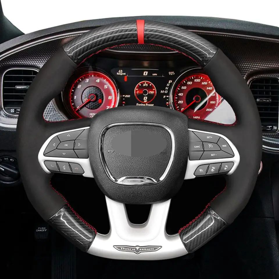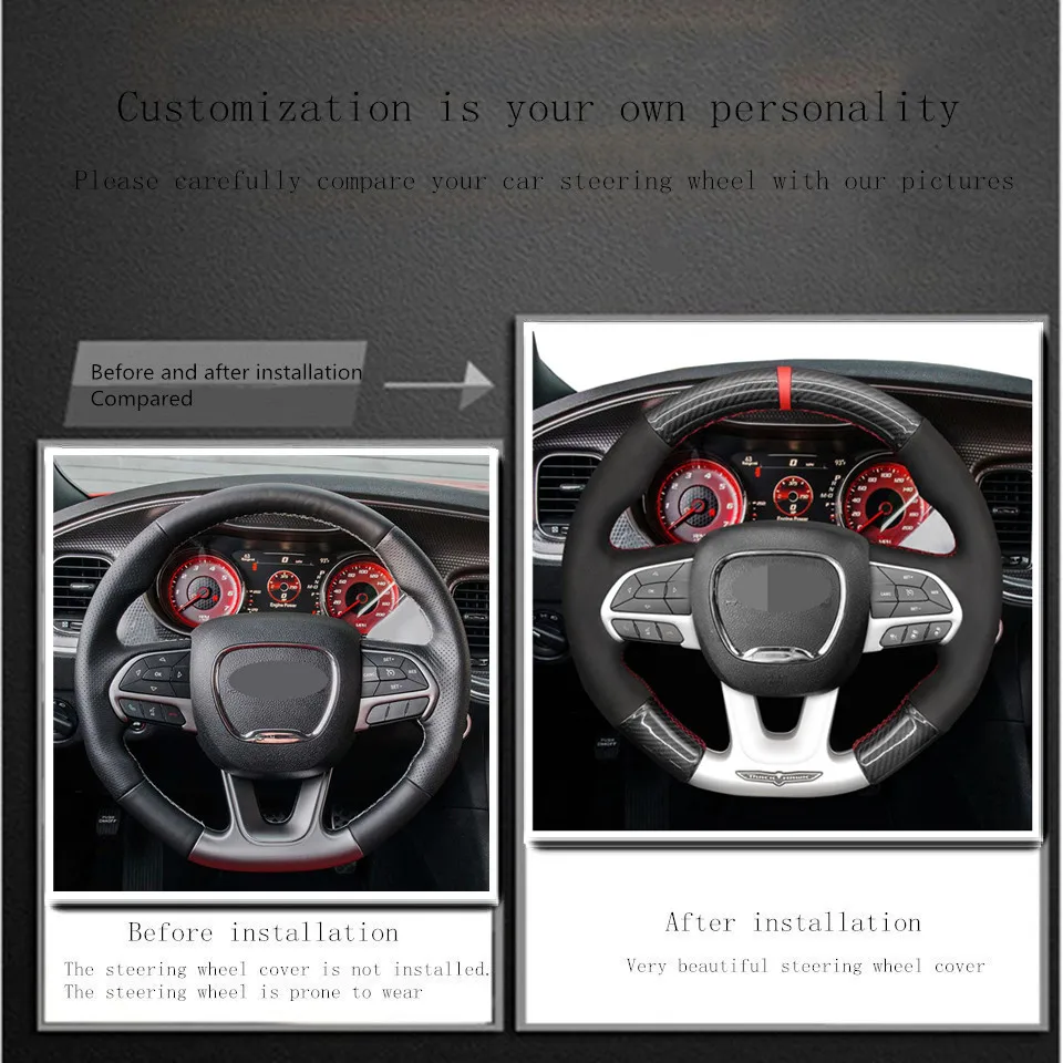 Перед покупкой, пожалуйста, проверьте и сравните рулевое колесо вашего автомобиля с изображением на картинке. (наши чехлы для рулевого колеса изготовлены по индивидуальному заказу, если есть какая-либо разница, они не подойдут)! Это чехол для руля, а не для руля! Этот продукт подходит для Dodge (сто) Challenger Dodge Charger 2015-2021 Dodge Durango