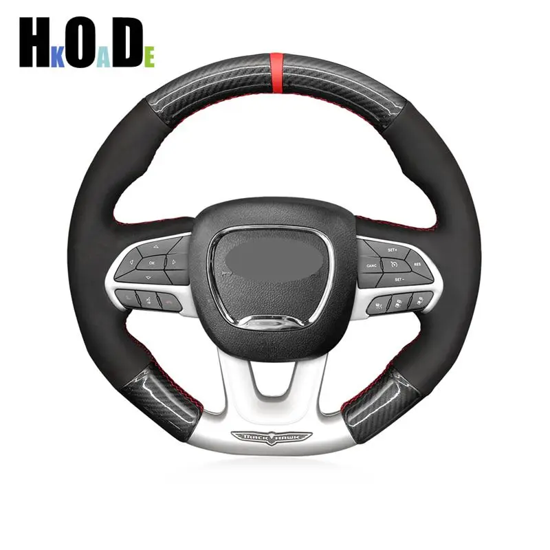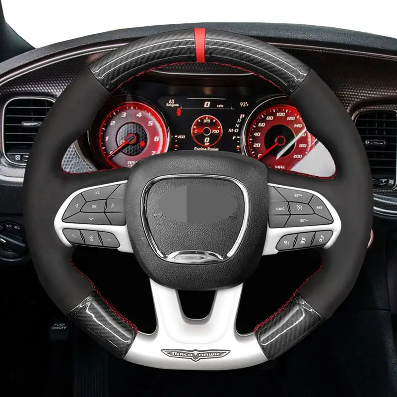 Оплетка на руль для Dodge (SRT), Challenger, Dodge Charger 2015-2021, замшевая, черная, из углеродного волокна