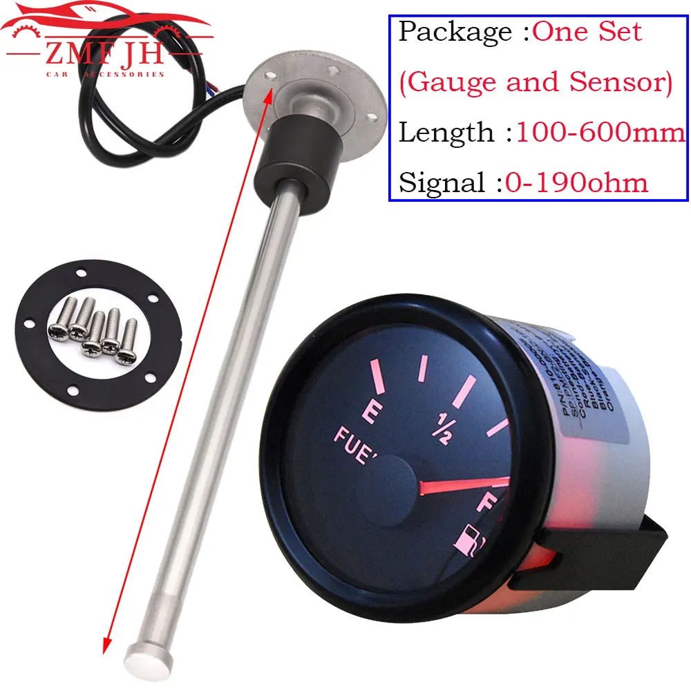 -Диапазон индикации: 0-100%-Название: Датчик уровня воды-Размер крепления: 52 мм или 2-1/16"-Рабочее напряжение: 9-32 В/подходит для 12-24 В-Материалы: нержавеющая сталь + никелированный пластик-Входной сигнал: 0 ~ 190 Ом (европейский стандарт),