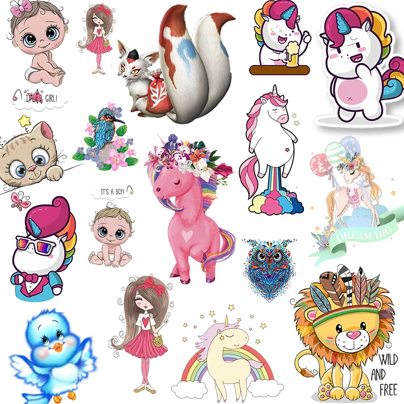 Наклейки с единорогом, термонаклейки на одежду, нашивки с мультяшными животными на одежду, термонаклейки на аппликацию детской одежды
